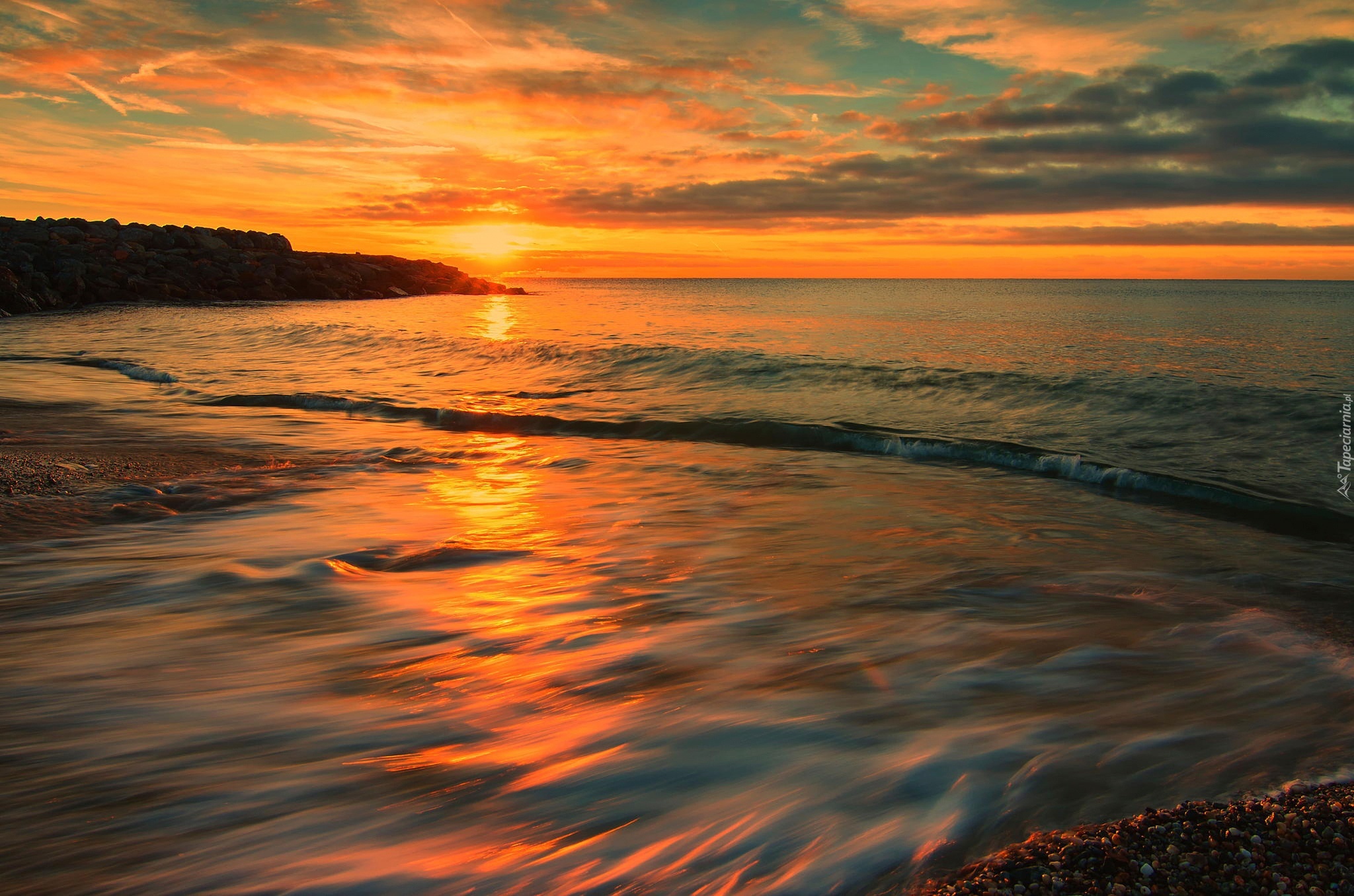 Edytor tapety: Zachod, Slonca, Chmury, Niebo, Morze