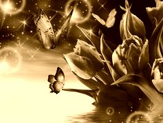 Edytor tapety: Fioletowe, Tulipany, Motyle, 3D, Wektorowa