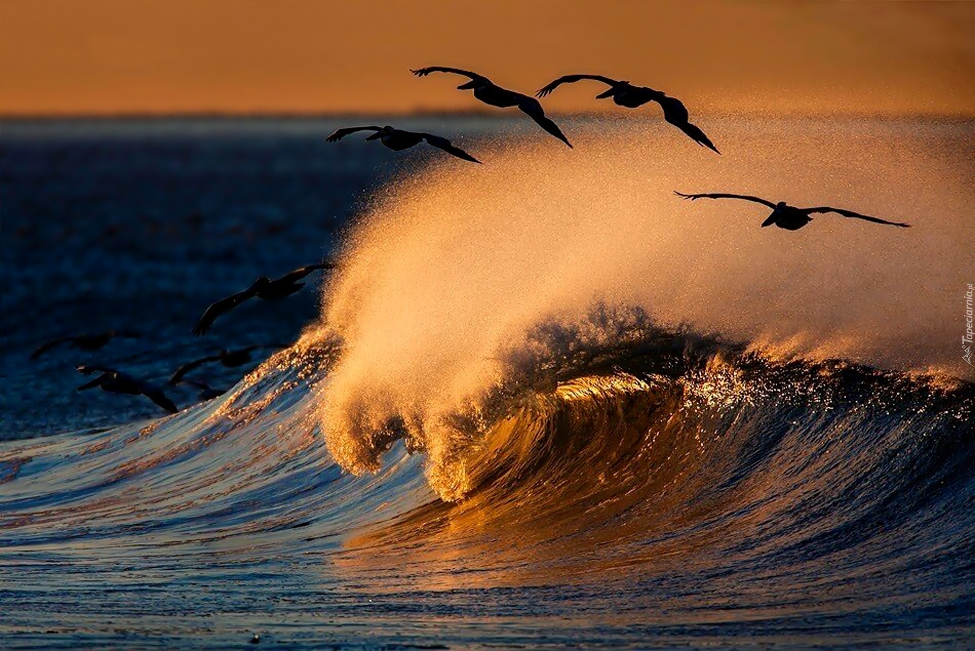 Edytor tapety: Morze, Fale, Ptaki