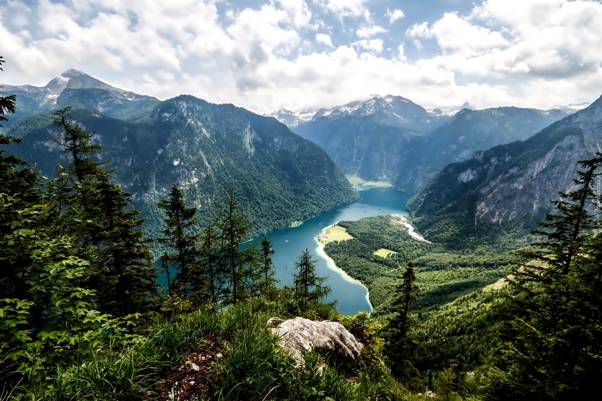 Edytor tapety: Góry, Jezioro, Świerki