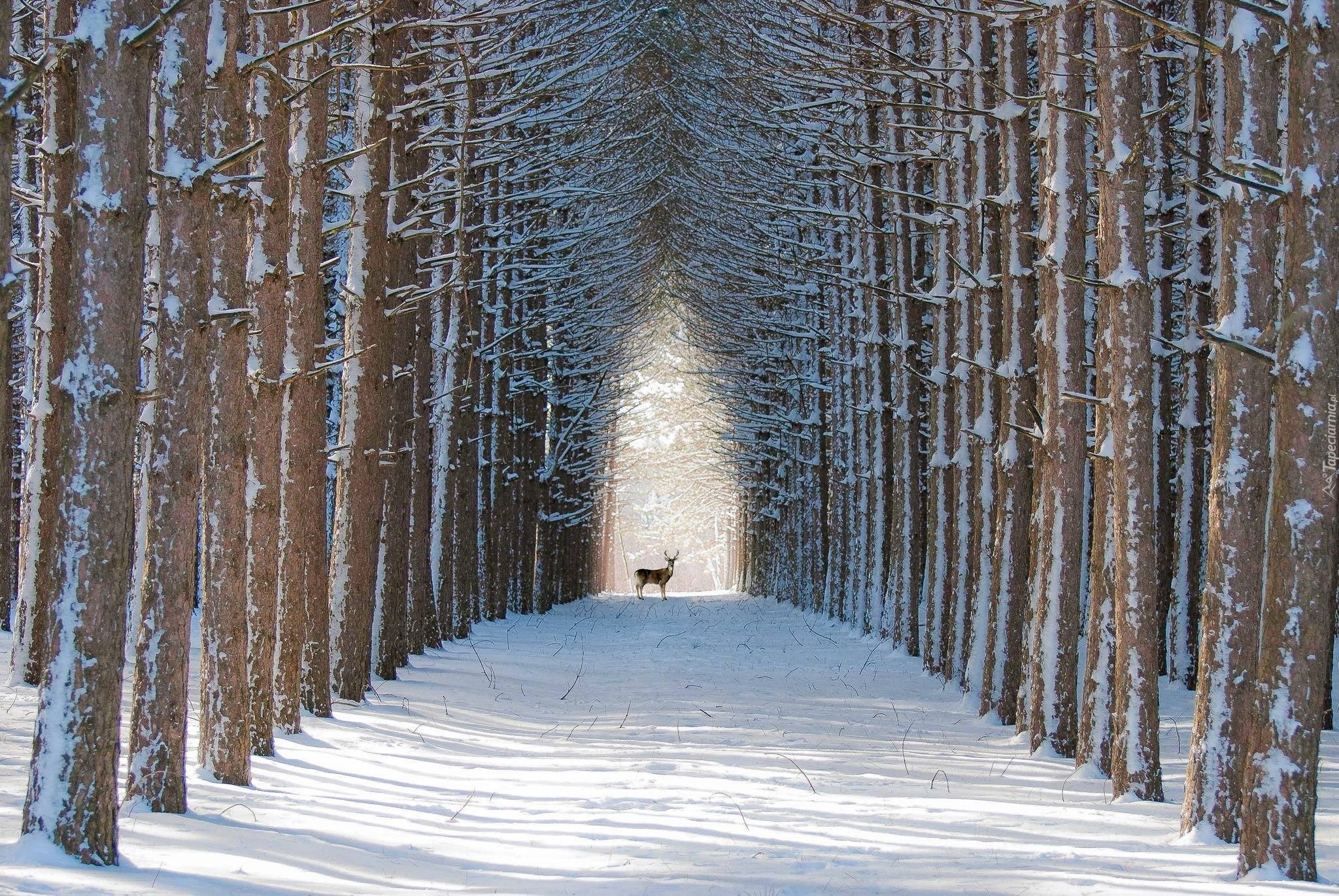 Edytor tapety: Las, Droga, Zima, Jeleń
