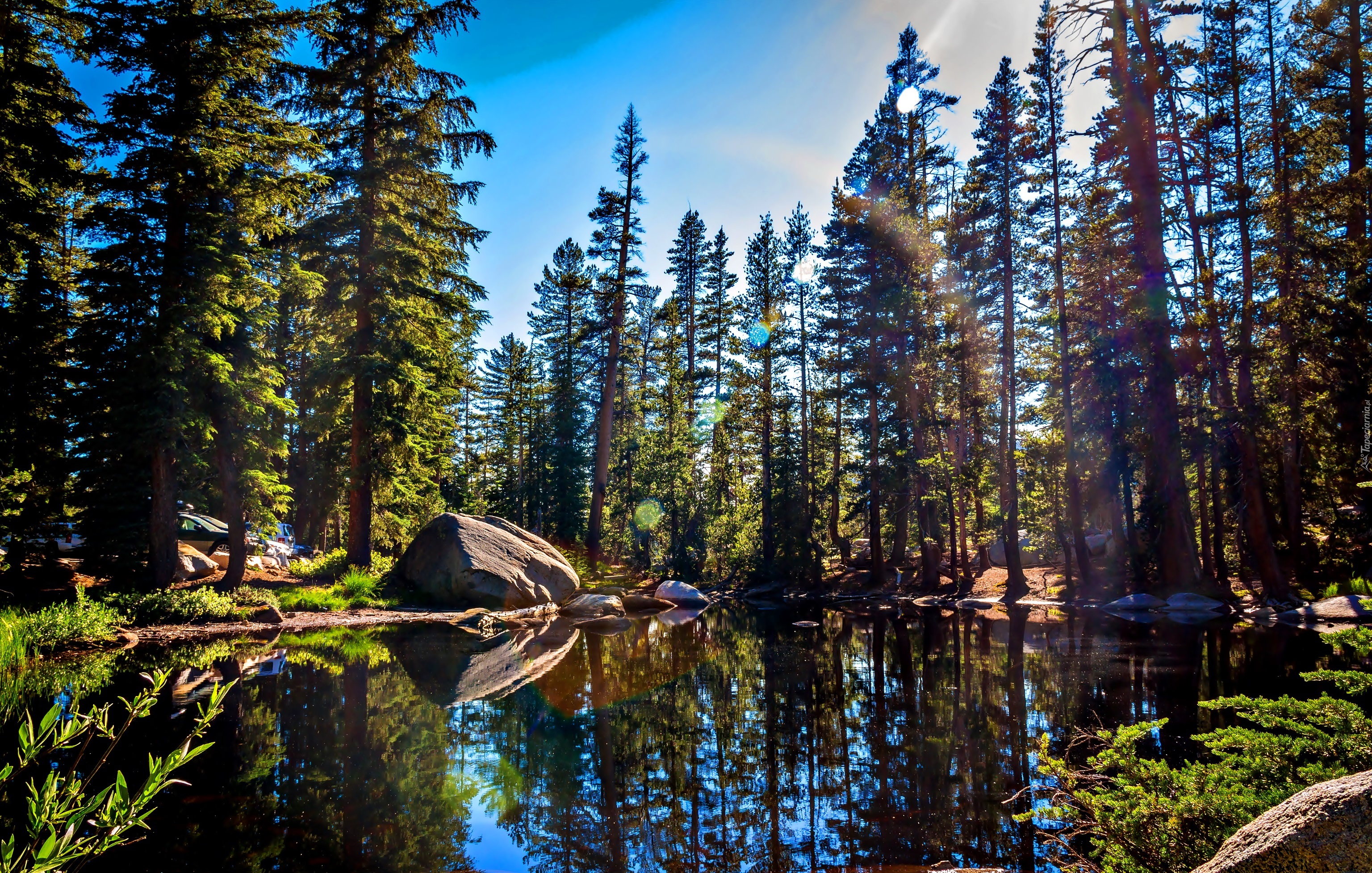 Edytor tapety: Stany Zjednoczone, Stan Kalifornia, Park Narodowy Yosemite, Góry, Lasy, Jezioro, Kamienie