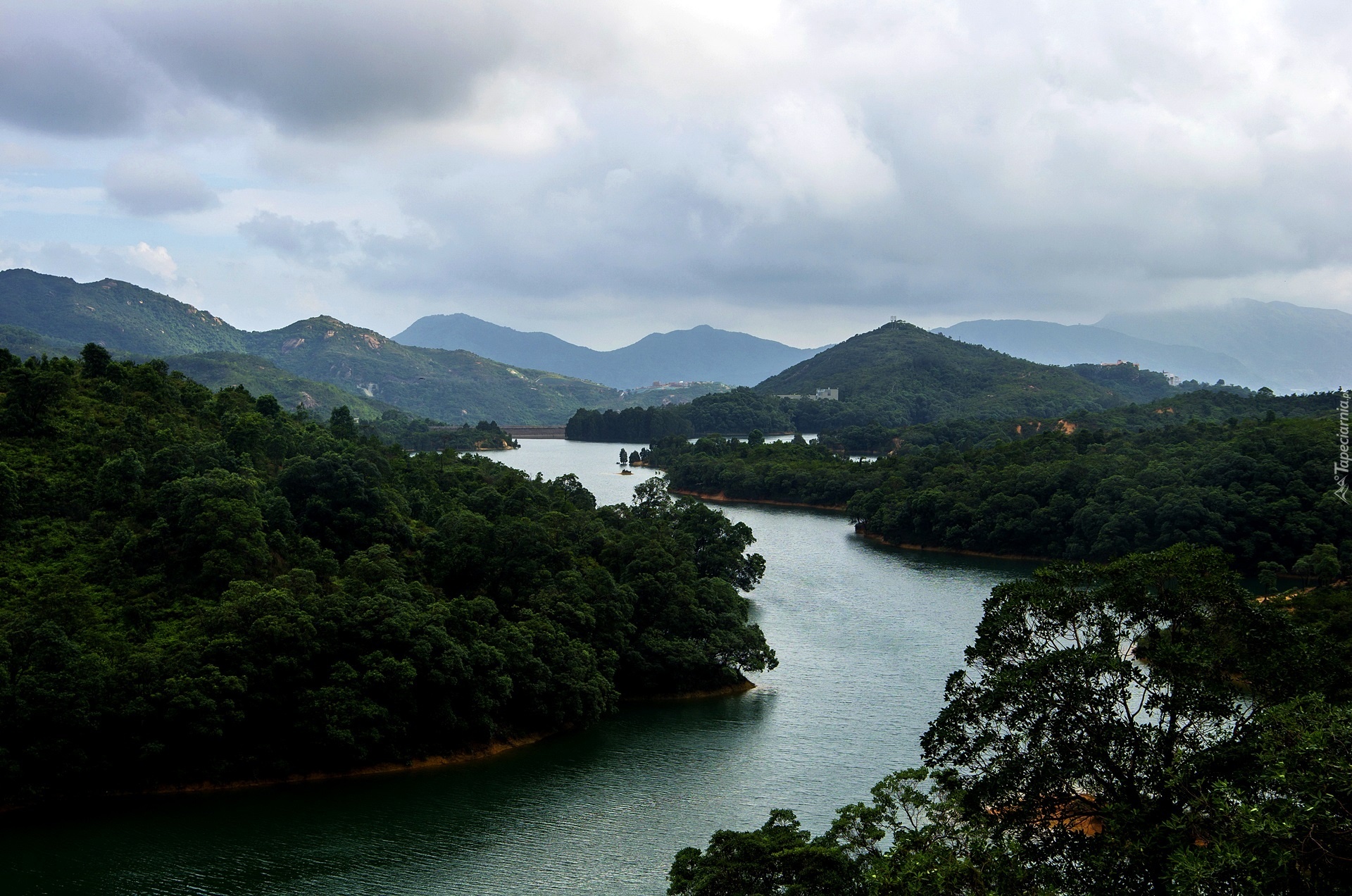 Edytor tapety: Góry, Las, Rzeka, Zachmurzone Niebo, Chiny