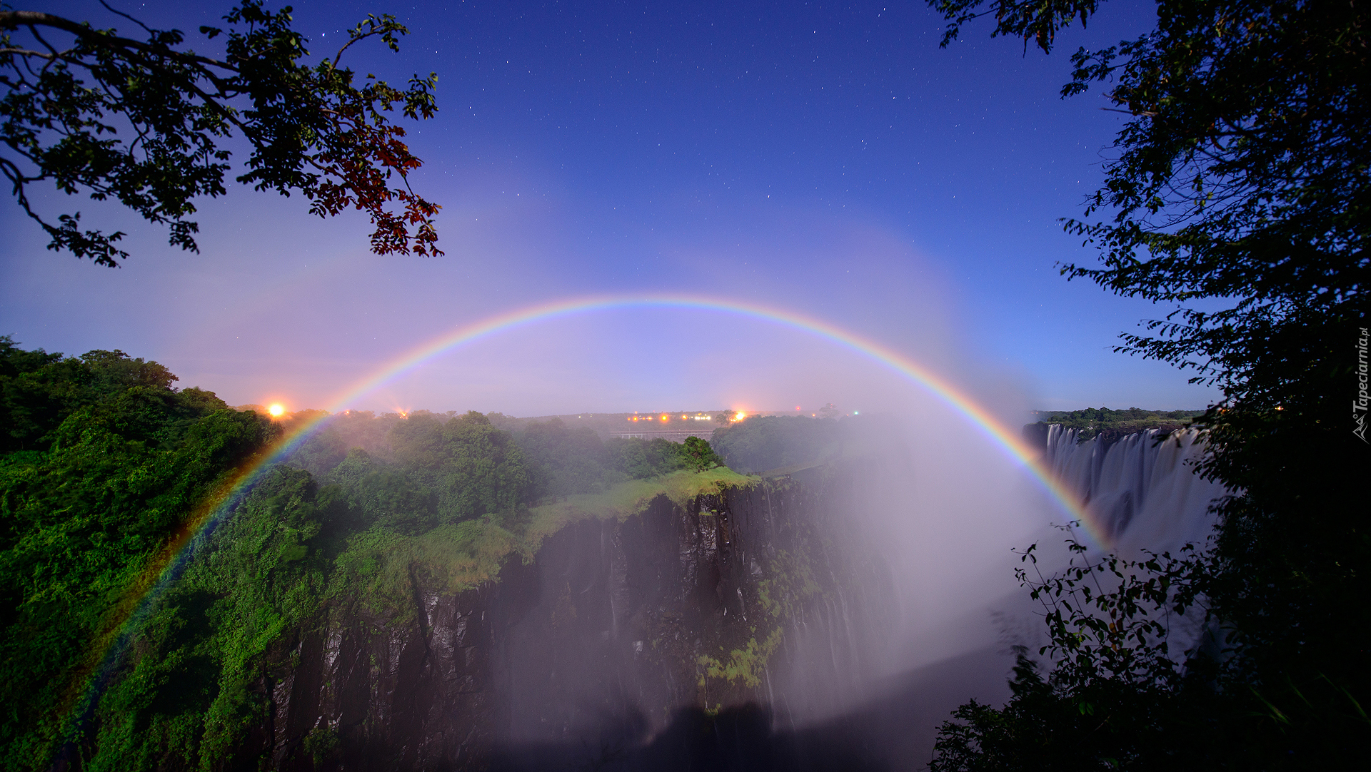 Edytor tapety: Las, Wodospad, Tęcza, Gwiazdy