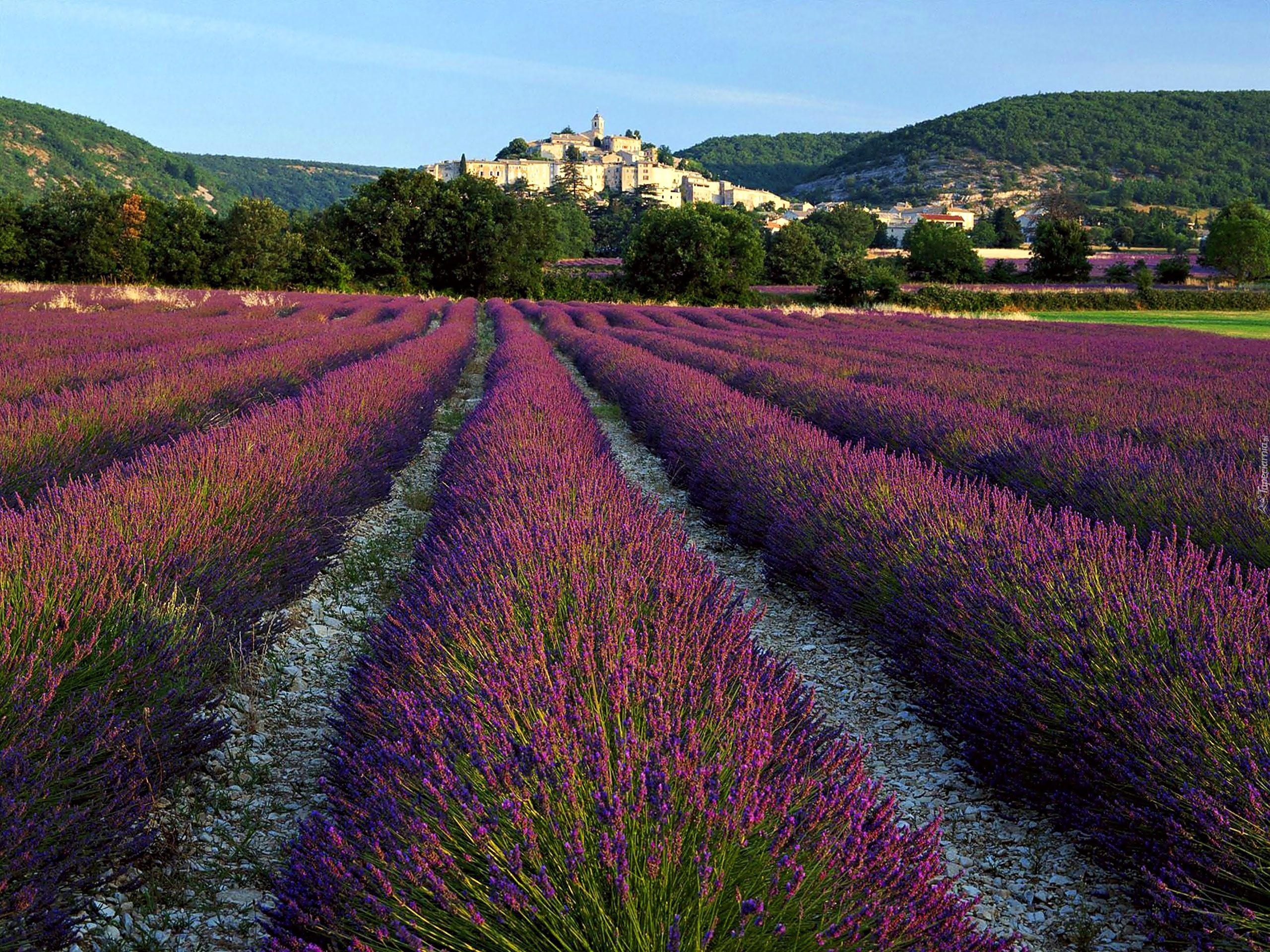 Edytor tapety: Pole, Lawendy, Wzgórza, Zamek Grignan, Château de Grignan, Prowansja, Francja