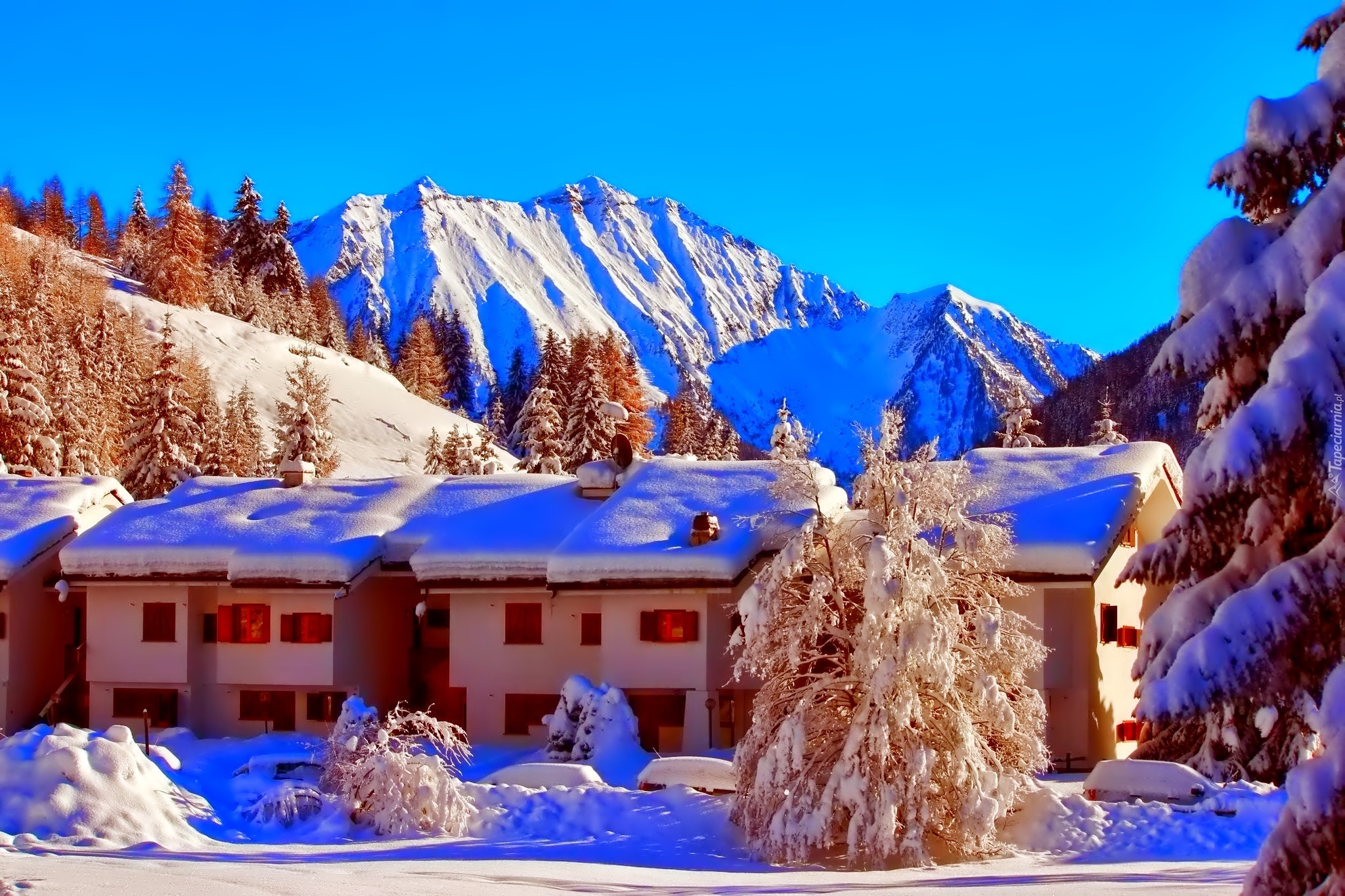 Edytor tapety: Domy, Góry, Drzewa, Zima