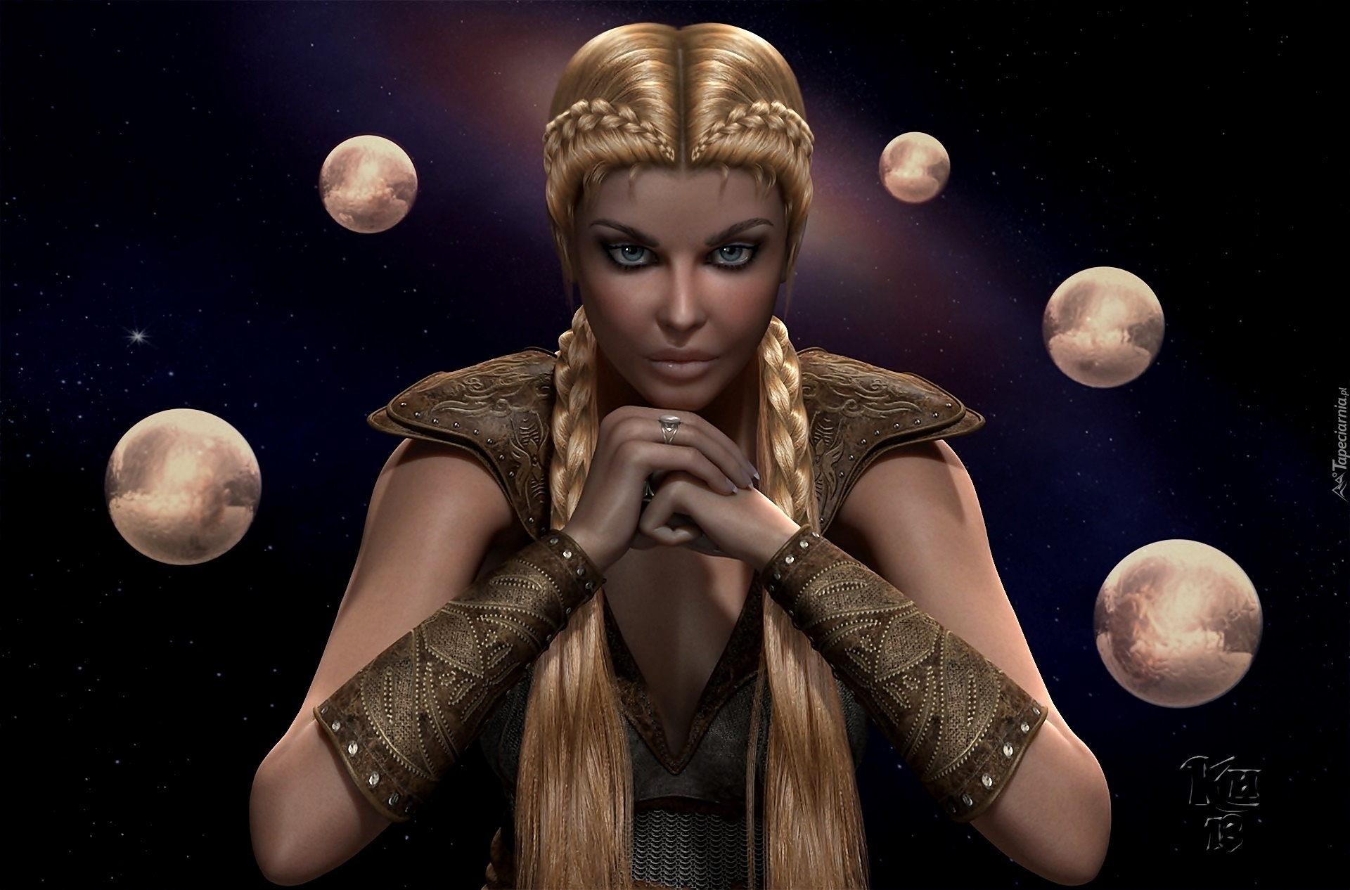 Edytor tapety: Kobieta, Długie Włosy, Kosmos, Planety, Grafika