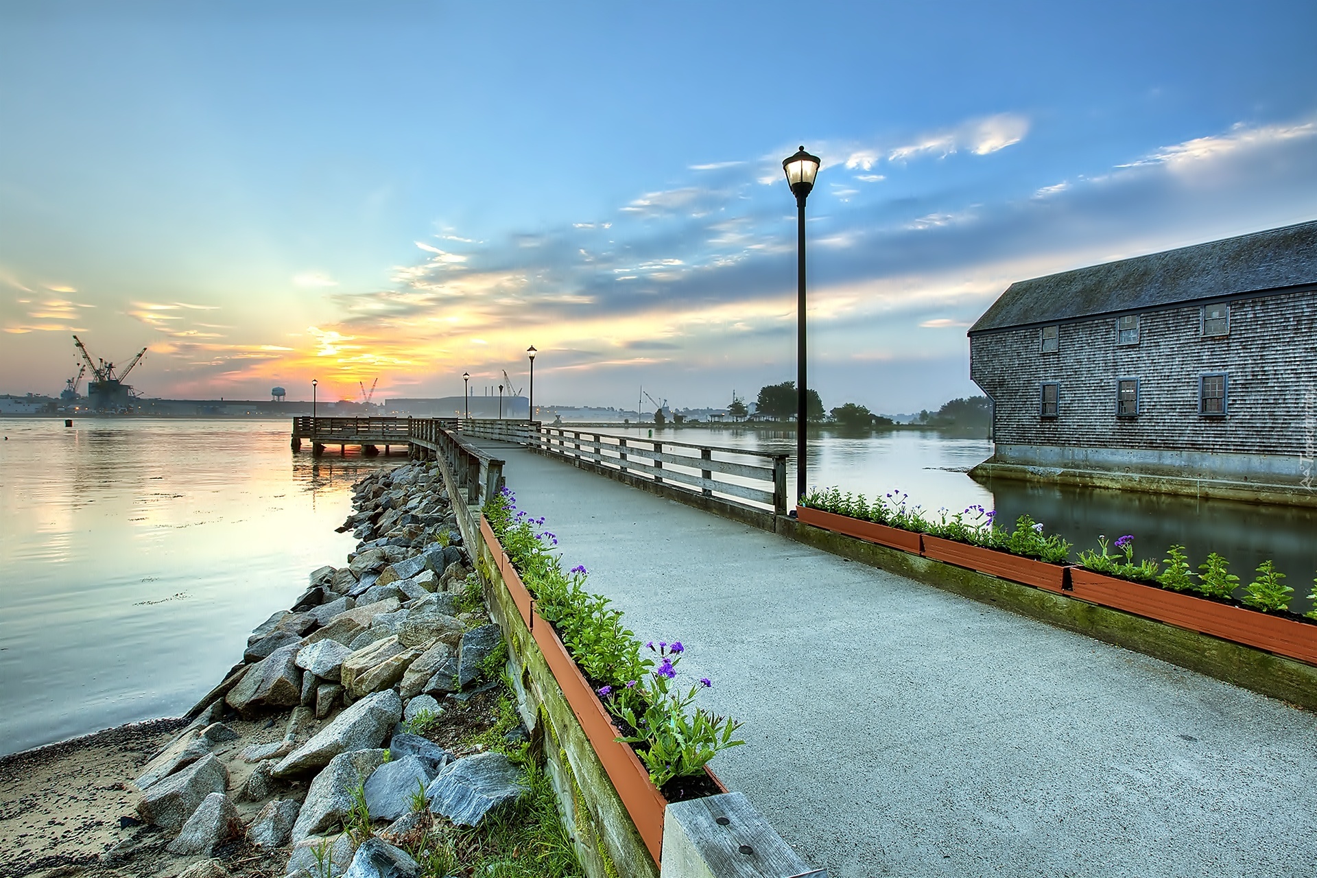 Edytor tapety: Morze, Molo, Zachód, Słońca, Latarnie
