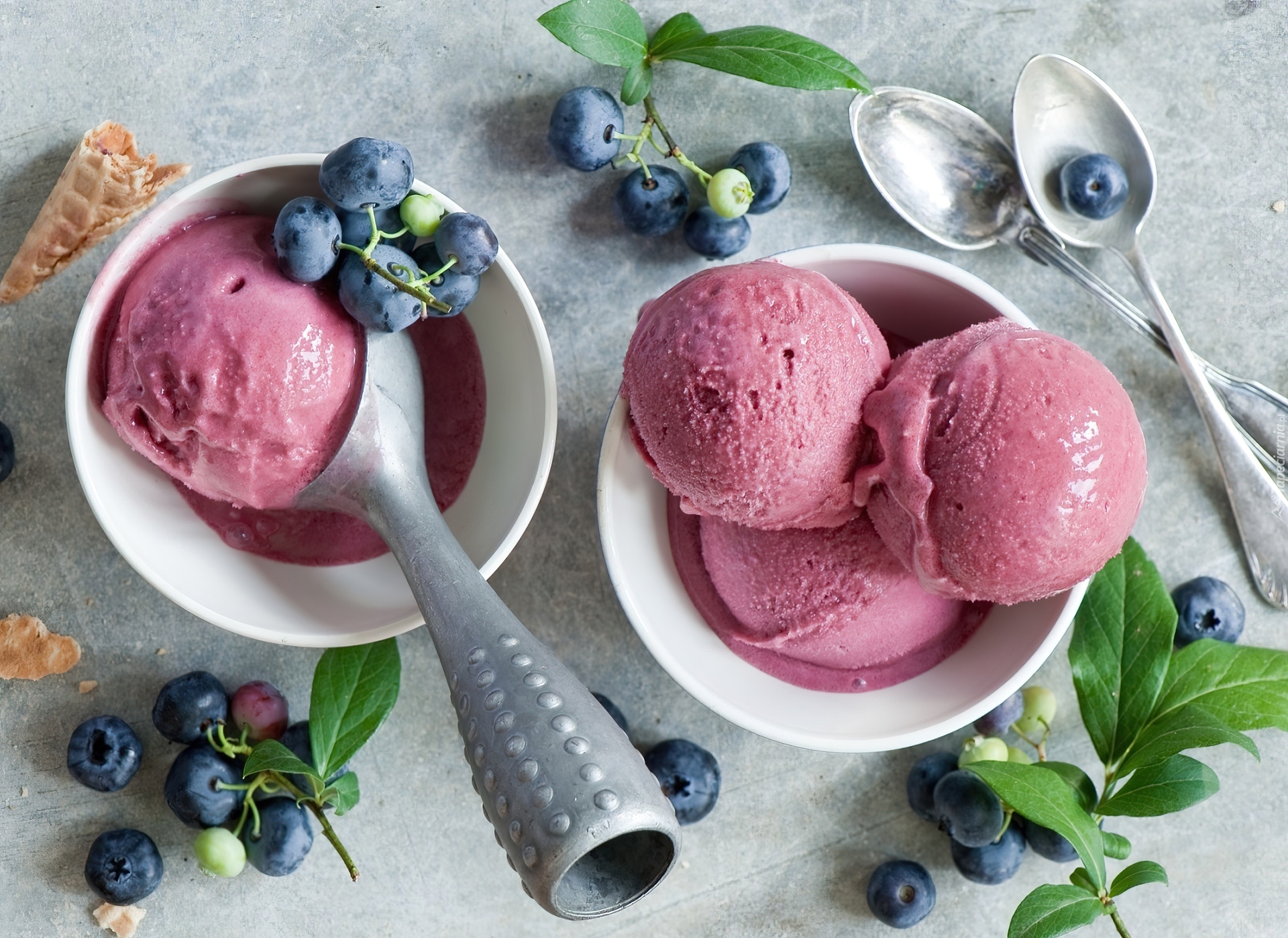 Edytor tapety: Owocowe, Lody, Jagody, Łyżeczki, Listki