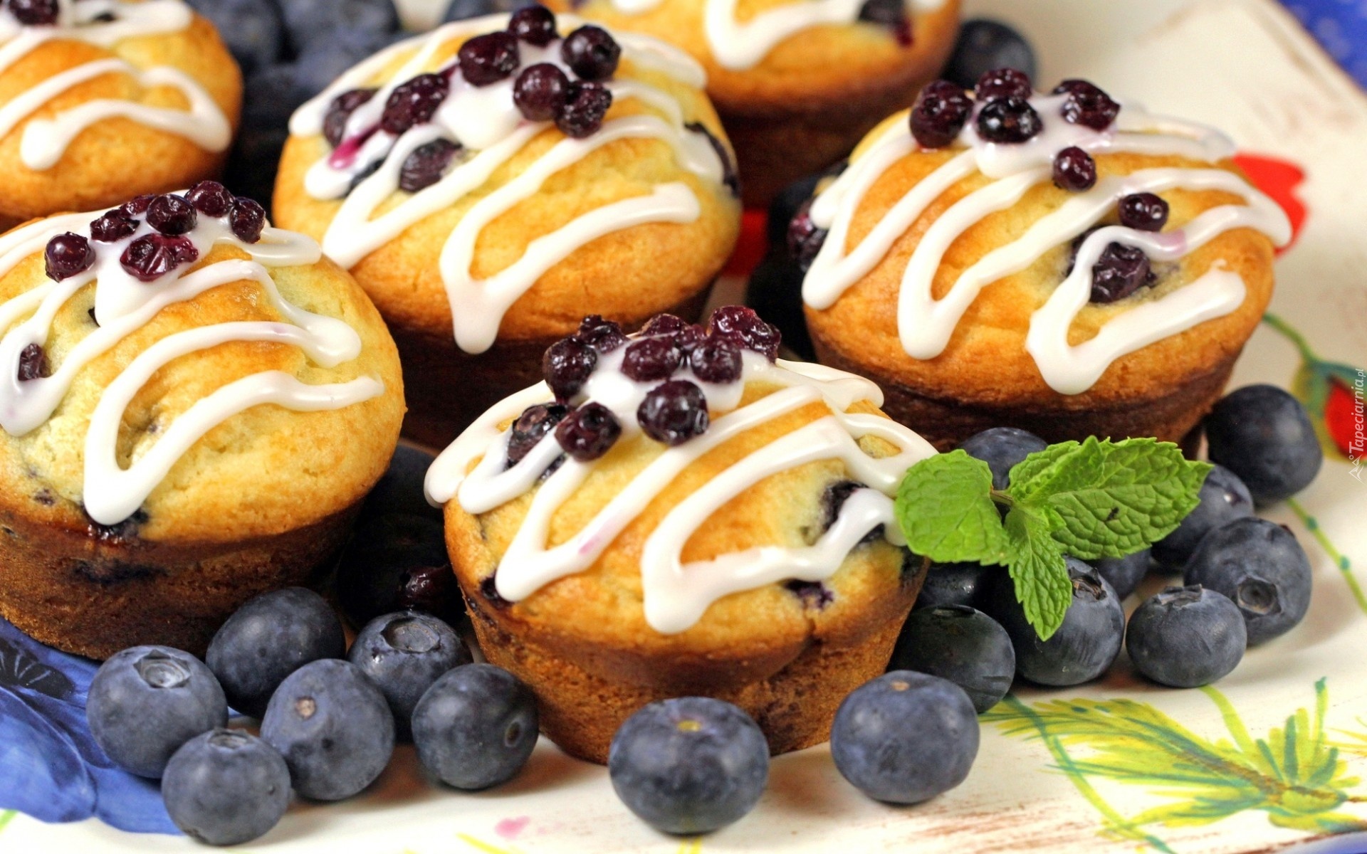 Edytor tapety: Babeczki, Jagody, Lukier, Listki, Mięty