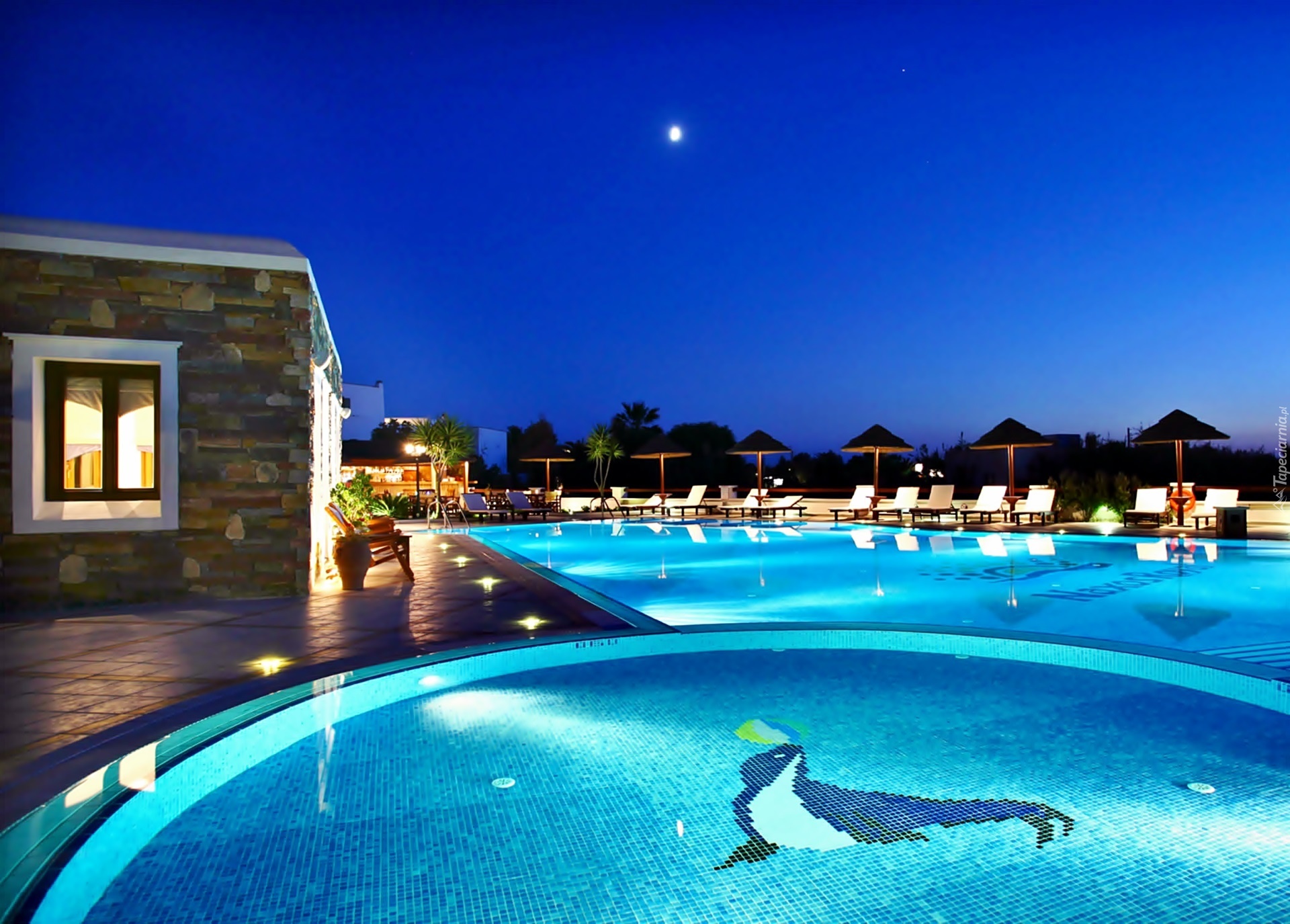 Edytor tapety: Hotel, Basen, Noc, Księżyc