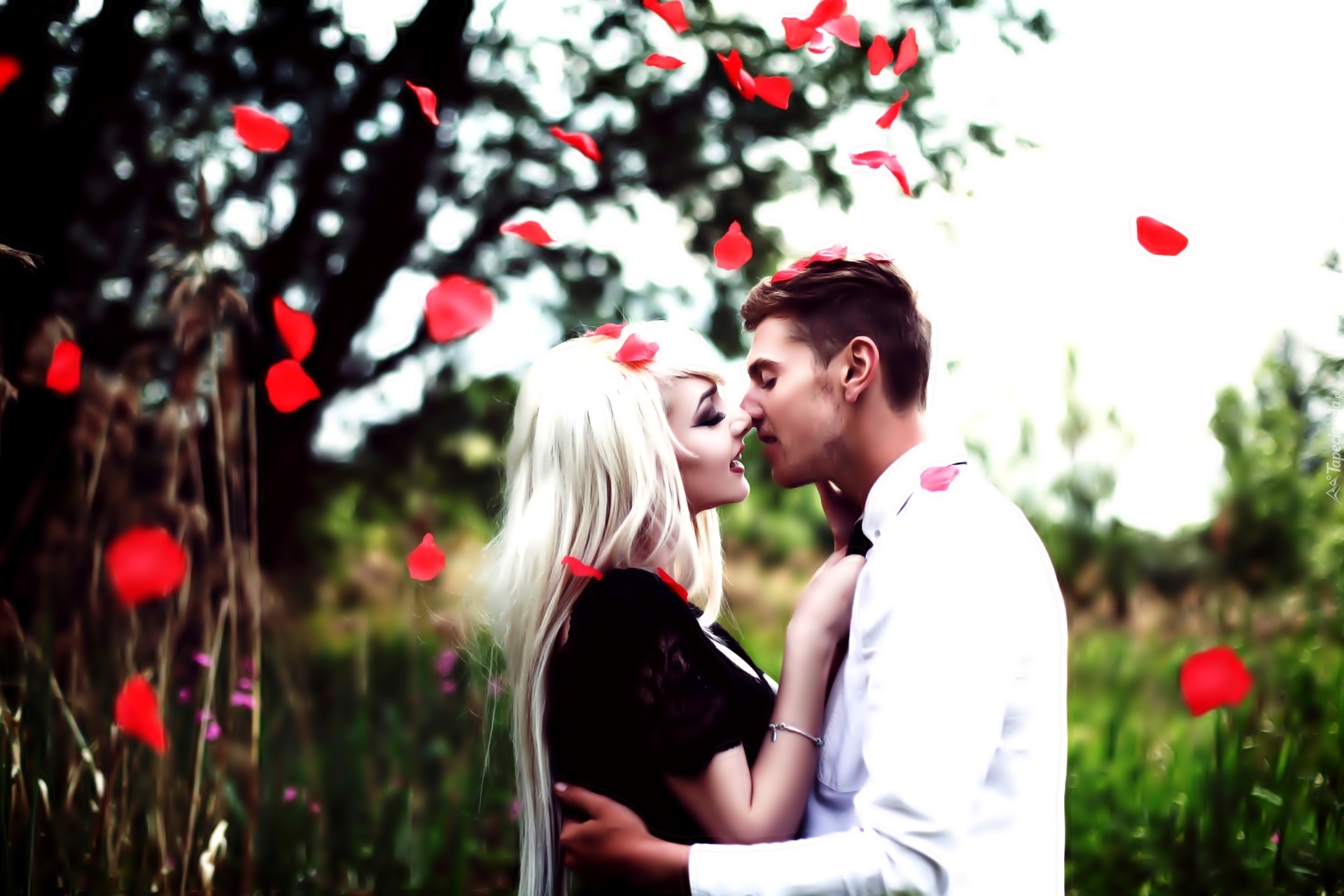 Edytor tapety: Zakochana, Para, Płatki, Róż
