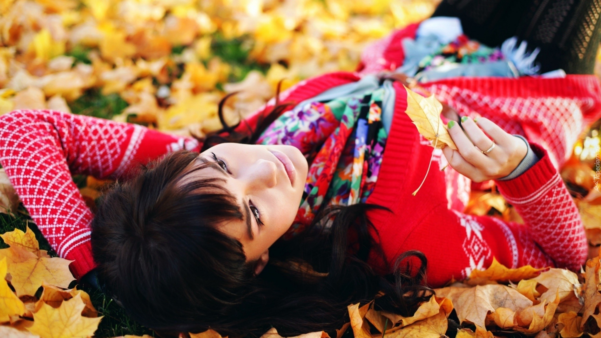 Edytor tapety: Leżąca, Kobieta, Jesień, Liście