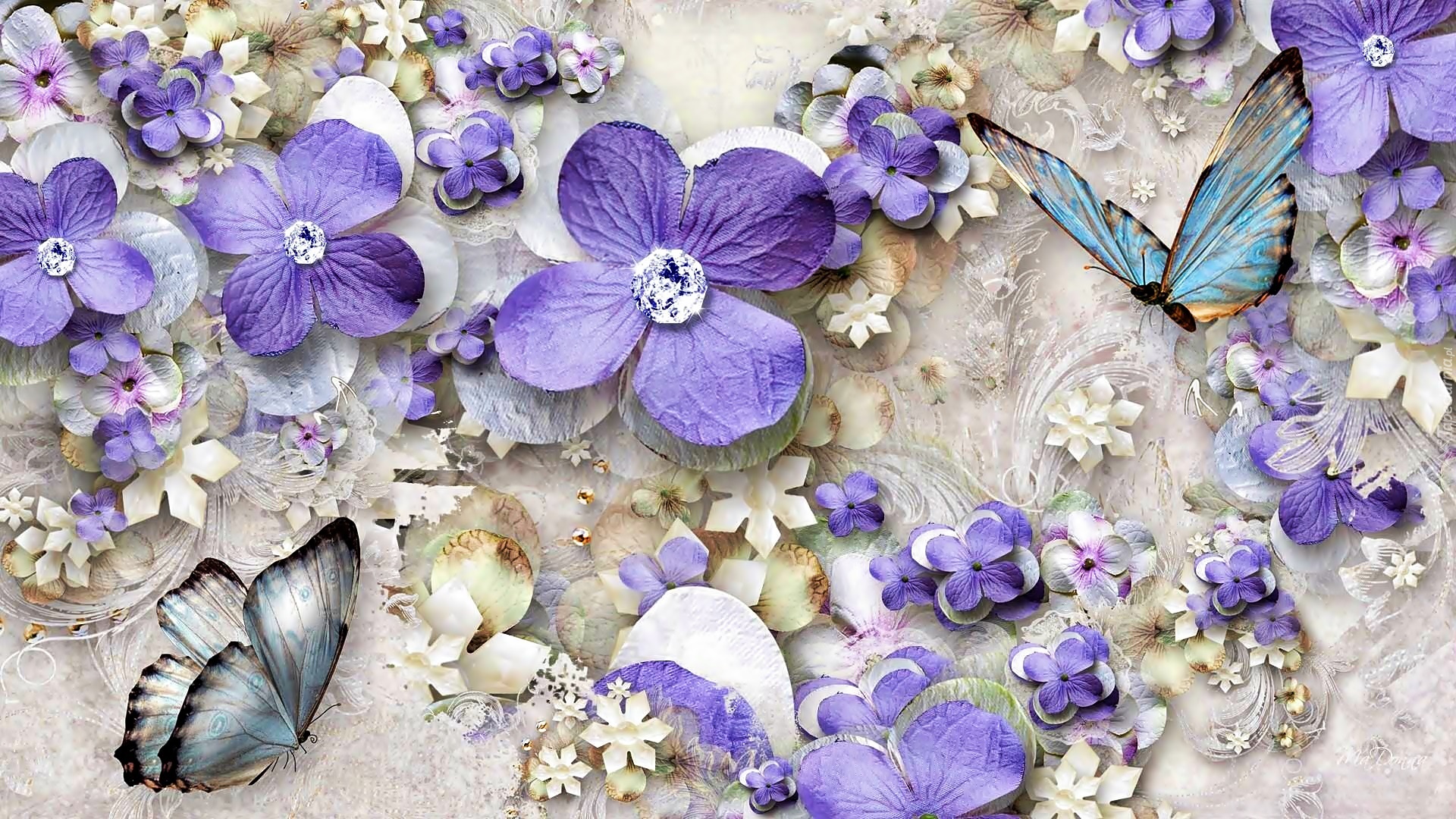 Edytor tapety: Kwiaty, Biało, Fioletowe, Motyle