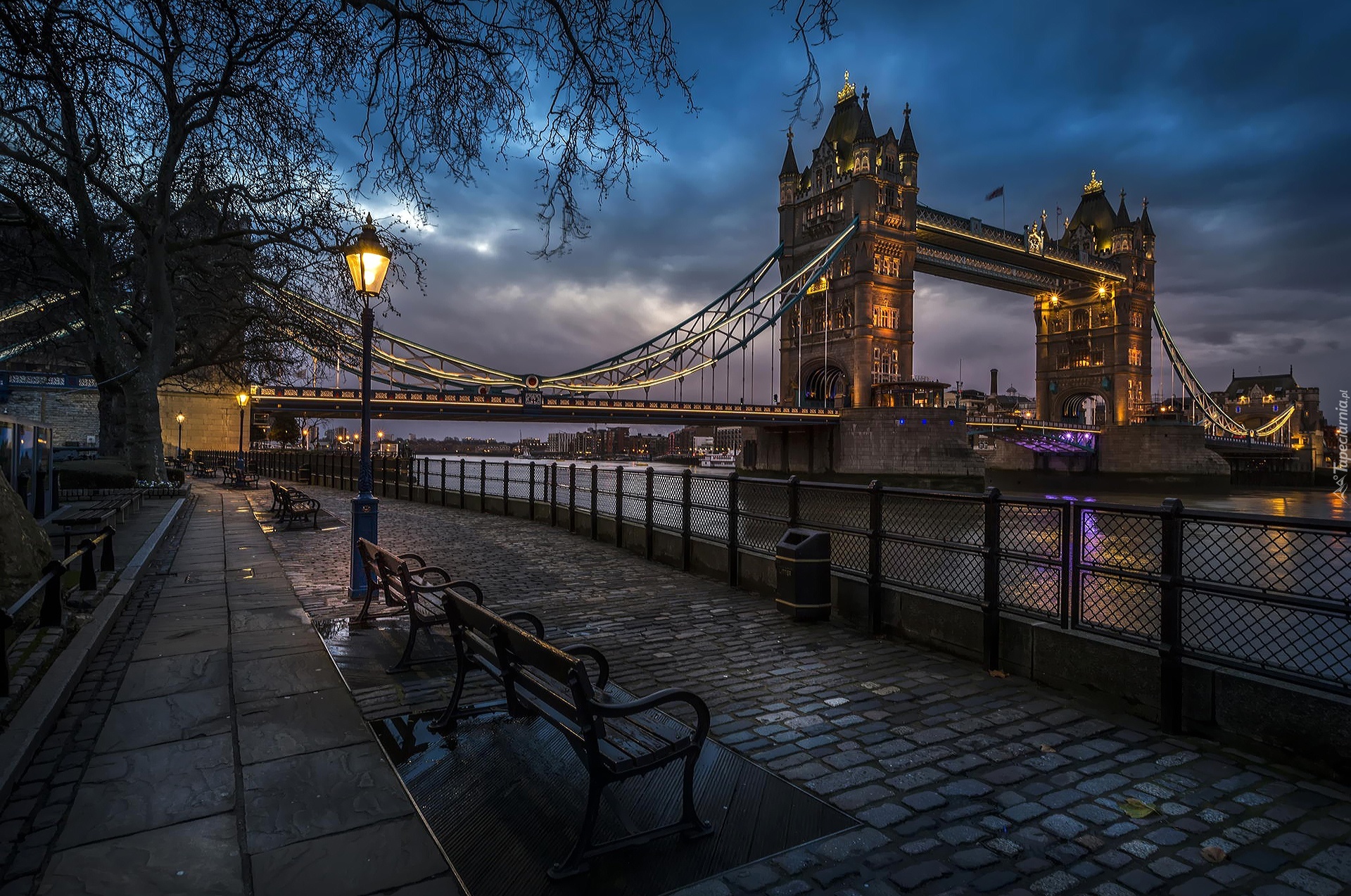Edytor tapety: Londyn, Most, Rzeka, Latarnia, Miasto nocą