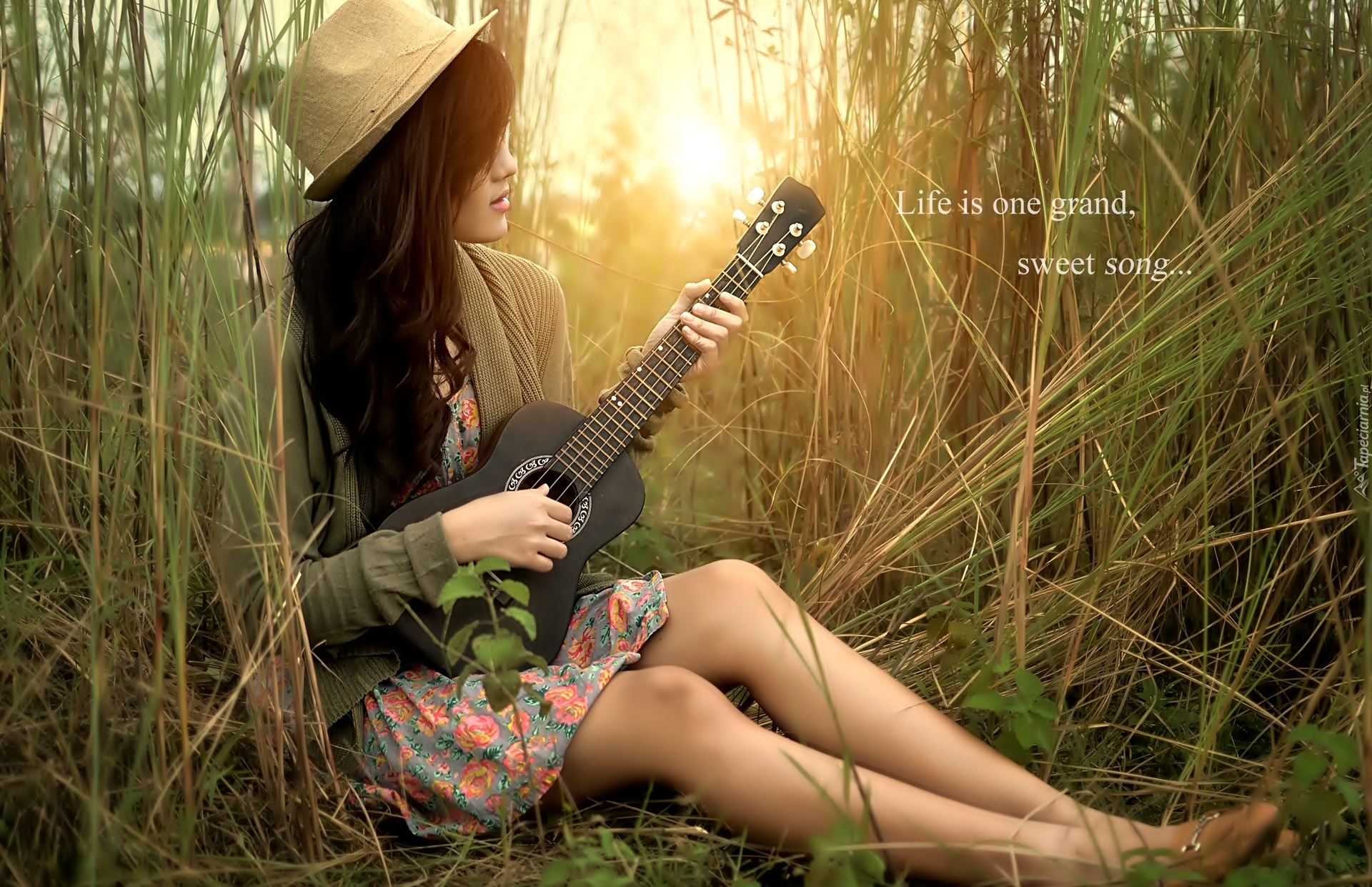 Edytor tapety: Kobieta, Gitara, ŁĄka