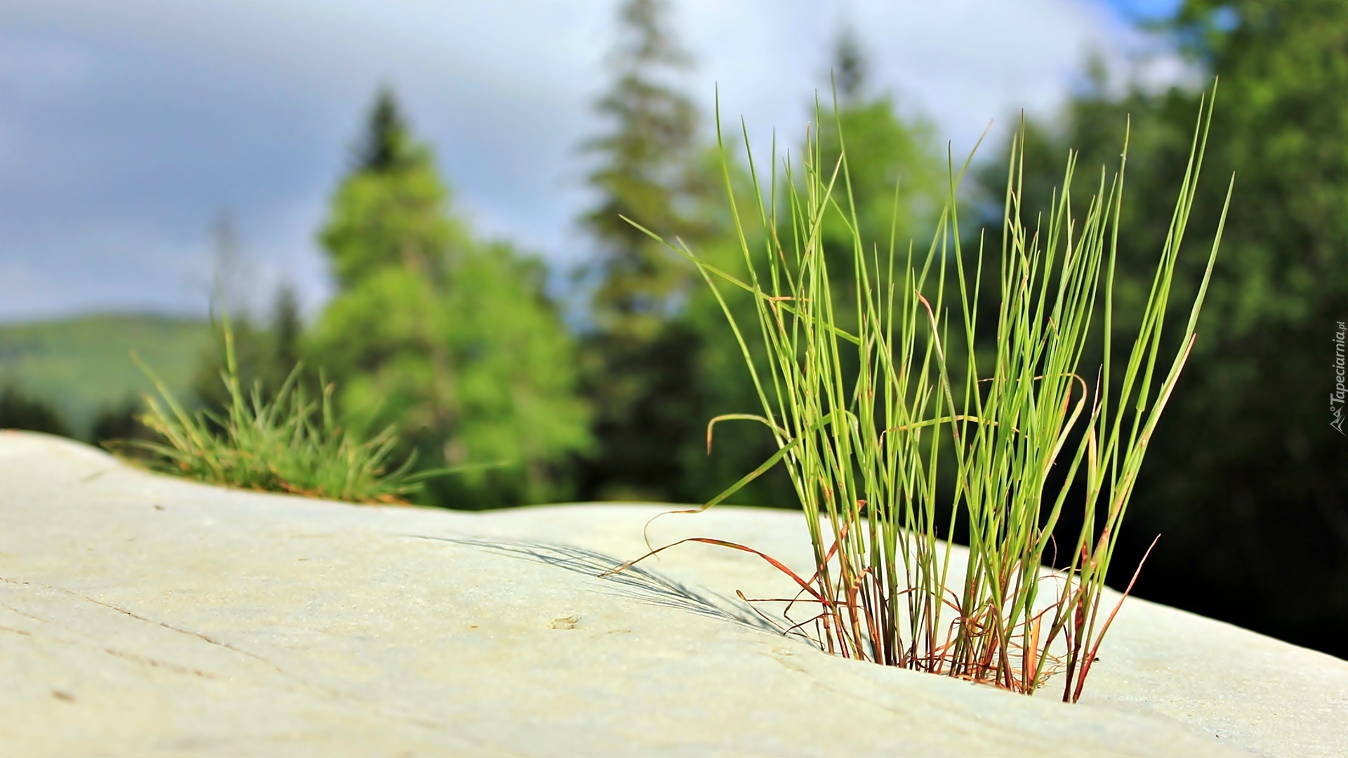 Edytor tapety: Wydmy, Trawa, Świerki, Rozmycie