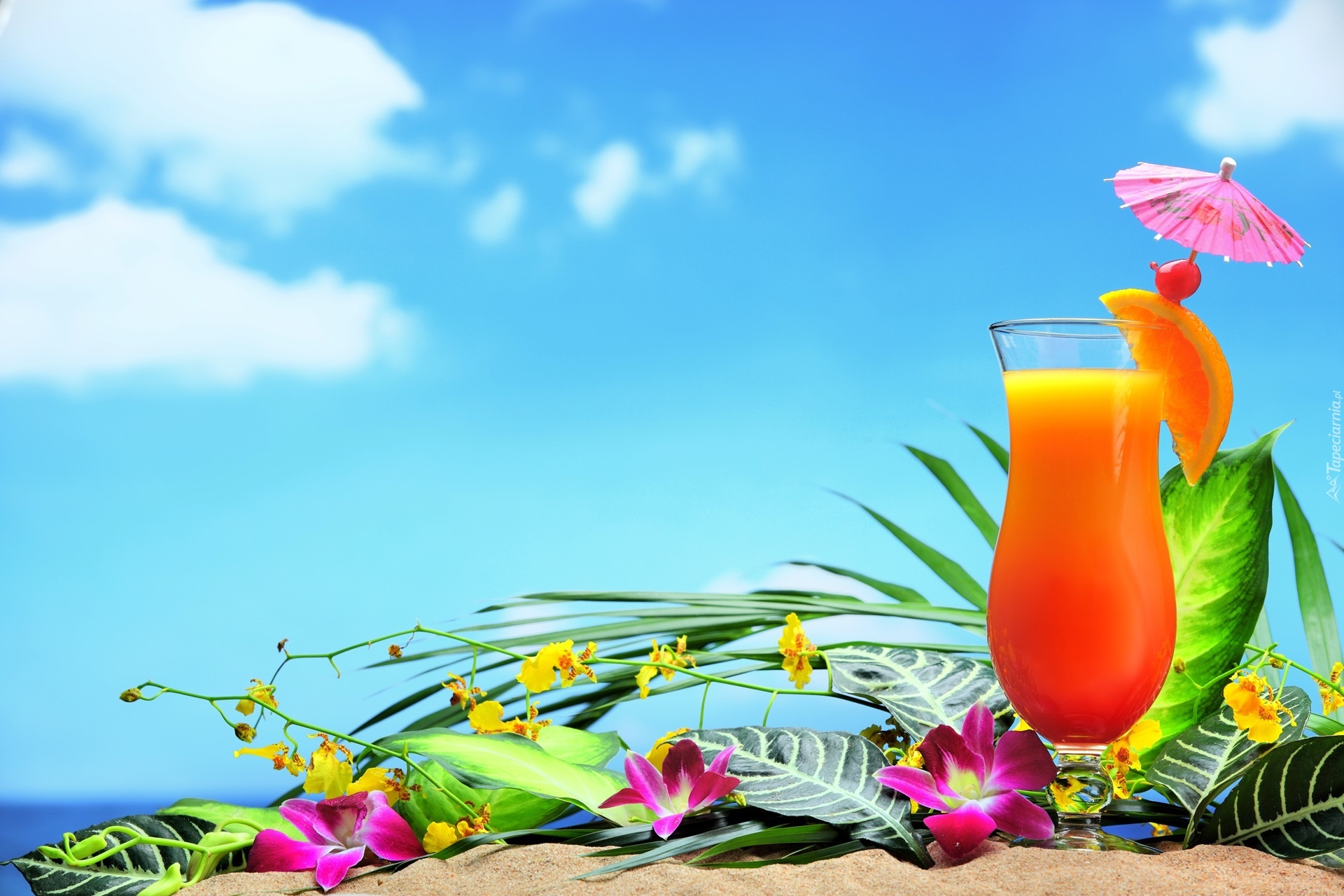 Edytor tapety: Sok Pomarańczowy, Kwiaty, Storczyki, Kompozycja, Drink