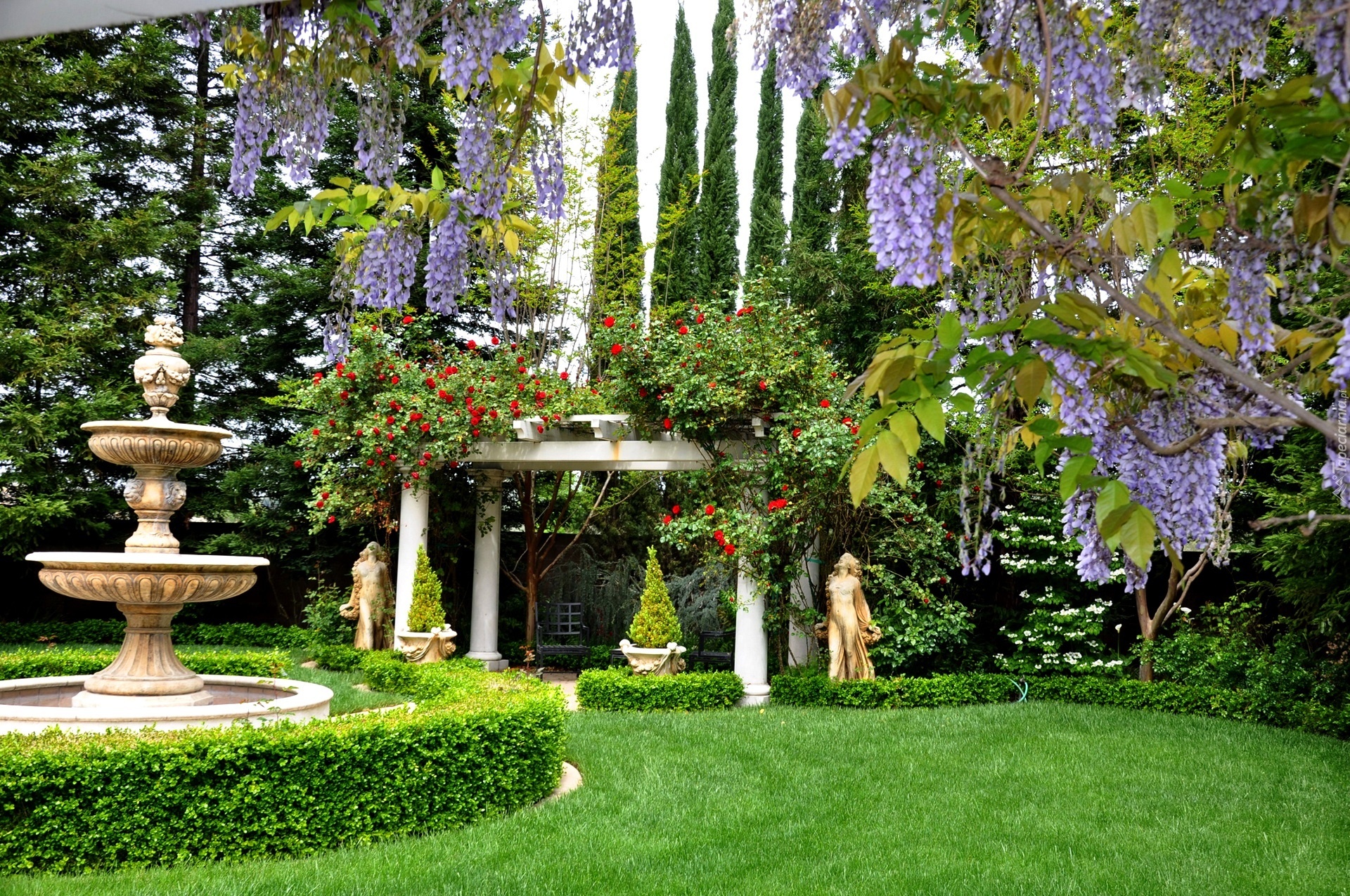 Edytor tapety: Park, Ogród, Fontanna, Posągi, Lato