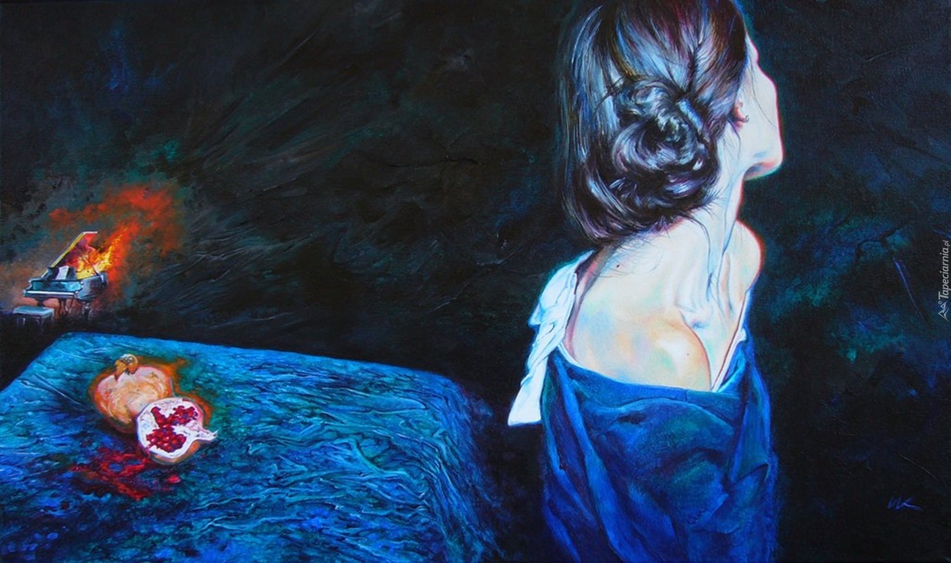 Edytor tapety: Włodzimierz Kukliński, Brunetka, Granat, Fortepian