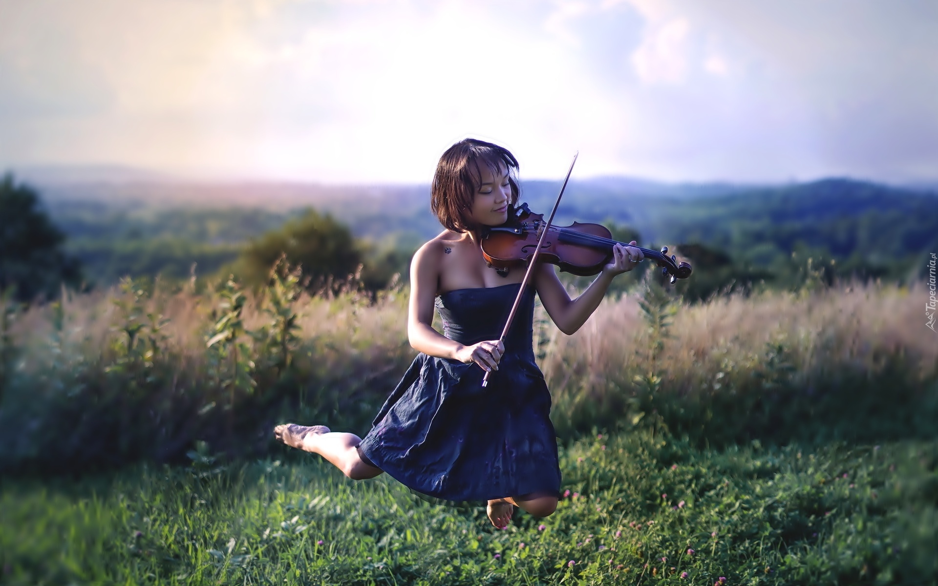 Edytor tapety: Łąka, Kobieta, Skrzypce