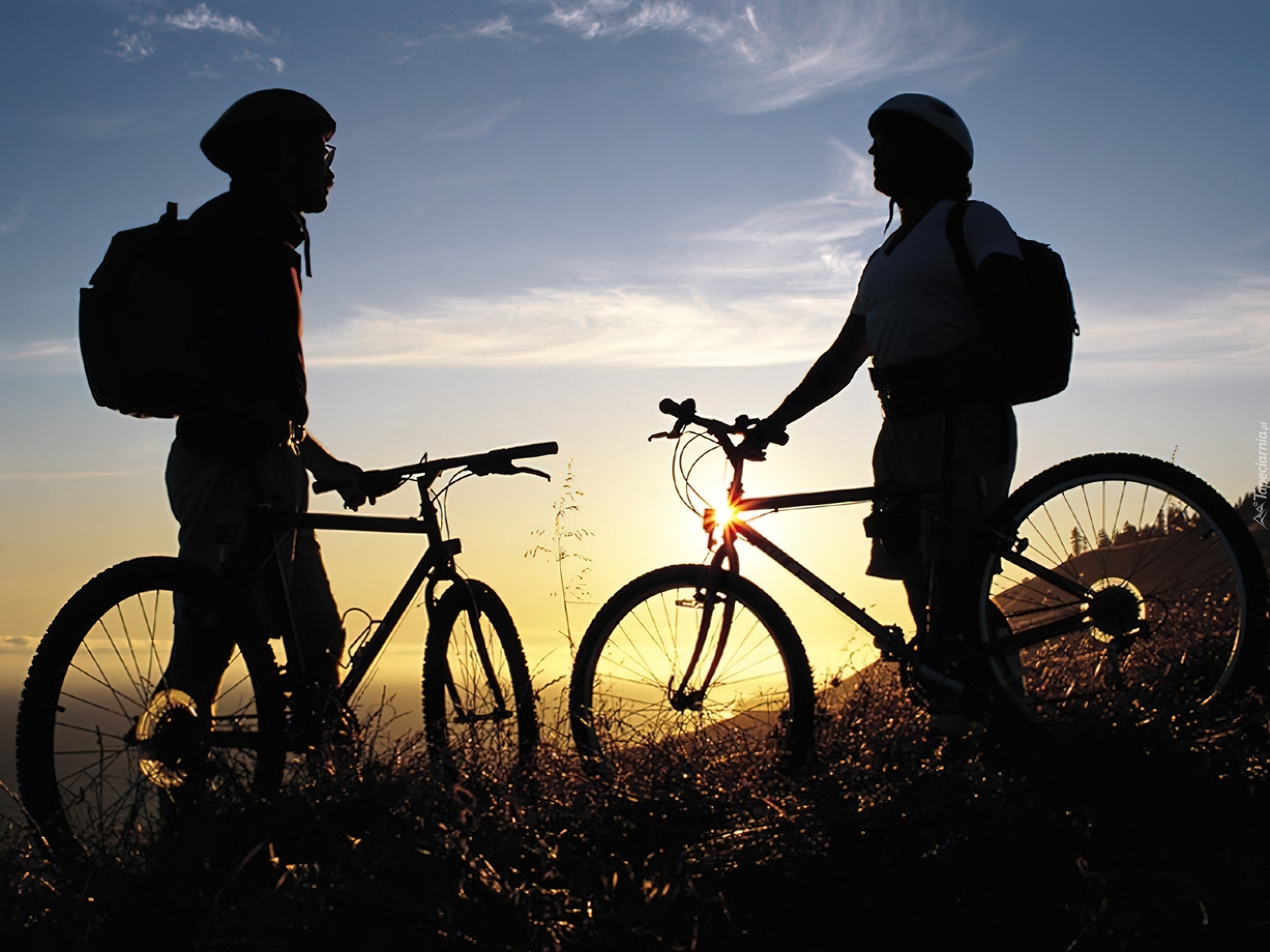 Edytor tapety: Rower, Zachód Słońca,kaski