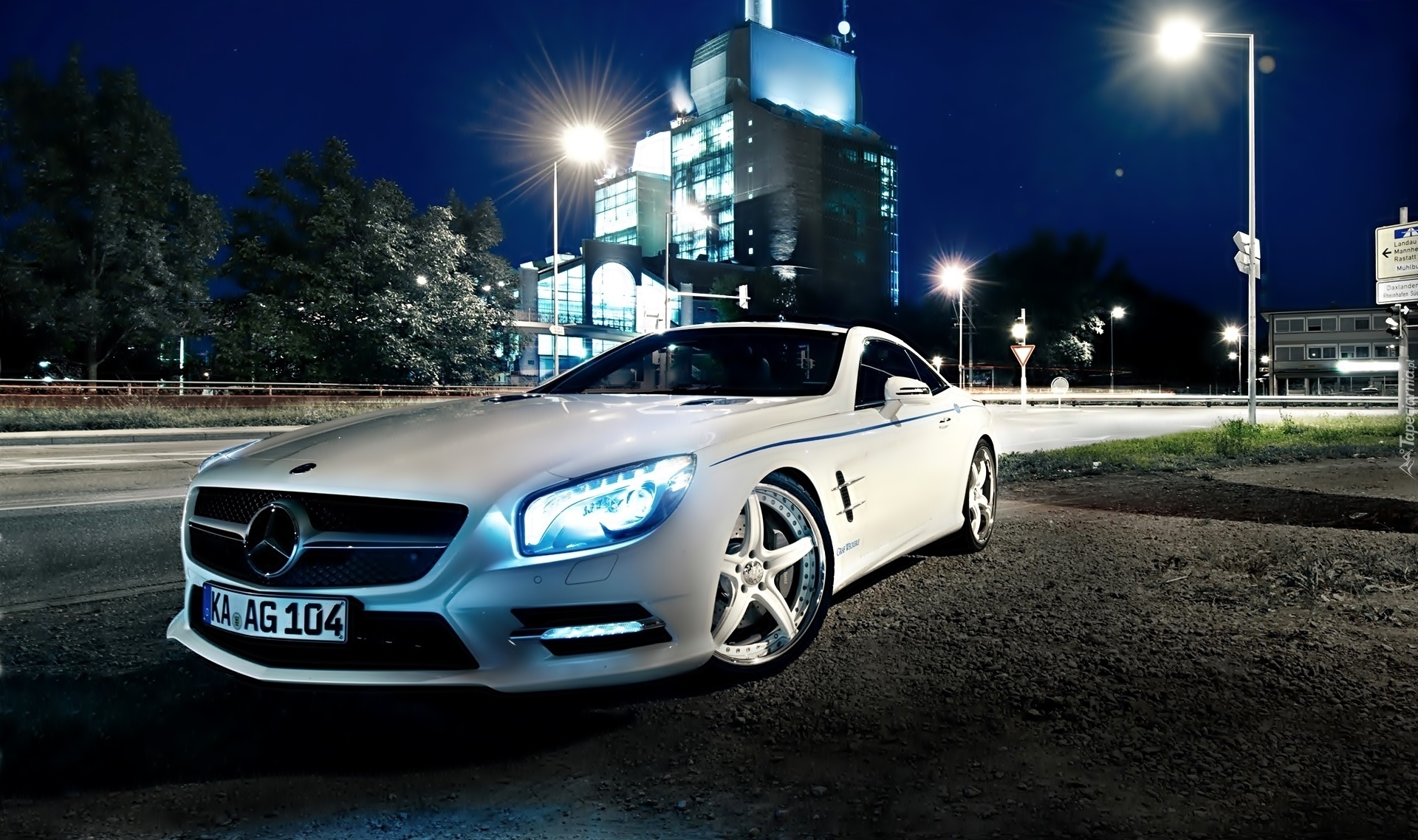 Edytor tapety: Mercedes, Benz, SL500, Noc, Latarnie, Wieżowiec