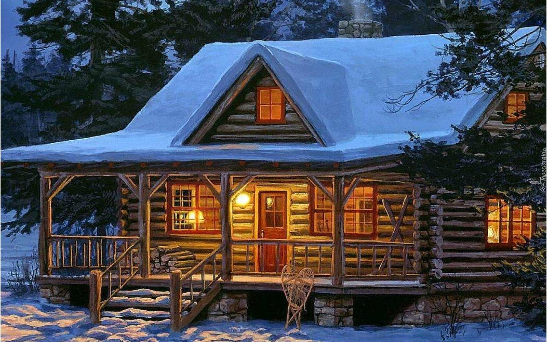 Edytor tapety: Oświetlony, Dom, Zima, Obraz, Darrell Bush