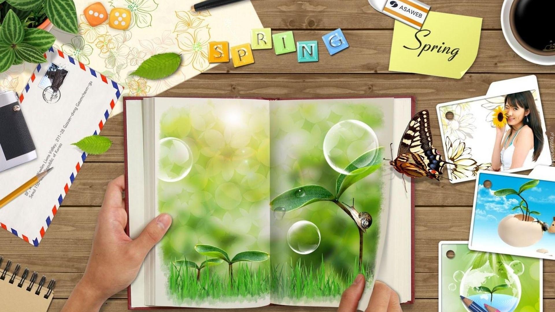 Edytor tapety: Wiosna, Kolaż, Zeszyt, Kartki, Motyl