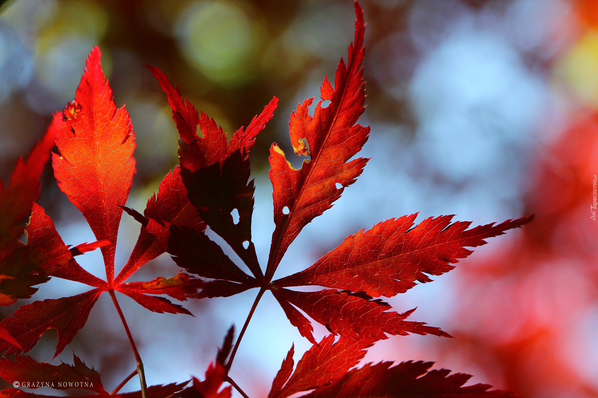 Edytor tapety: Klon Palmowy, Czerwone, Liście