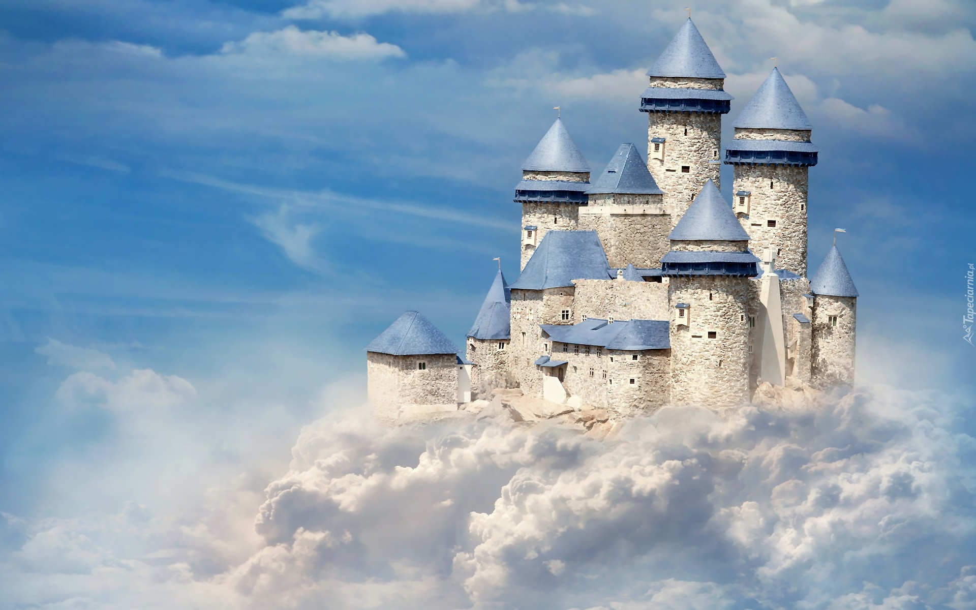 Edytor tapety: Zamek, Wieże, Niebo, Chmury