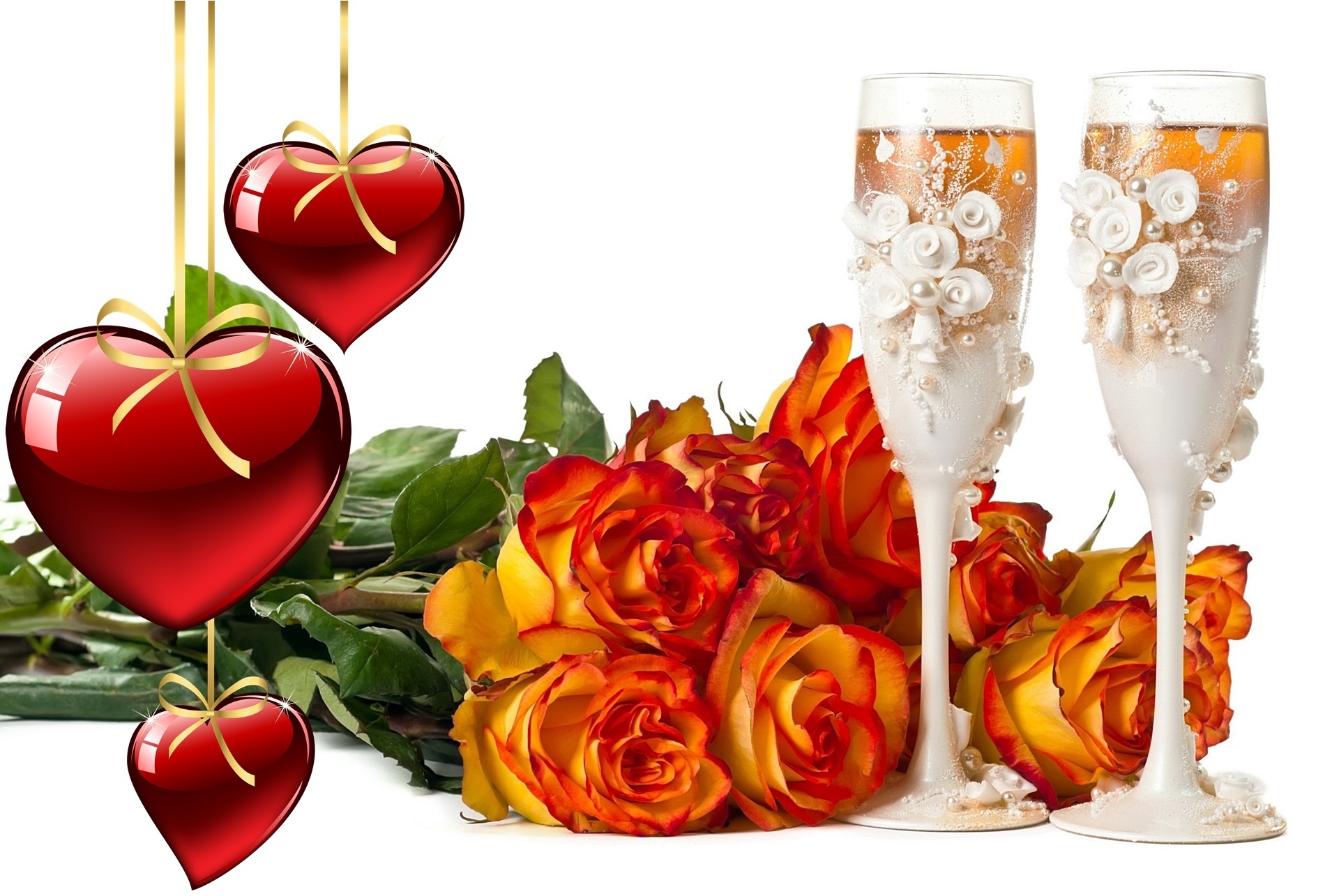 Edytor tapety: Serca, Róże, Ozdobne Kieliszki, Walentynki