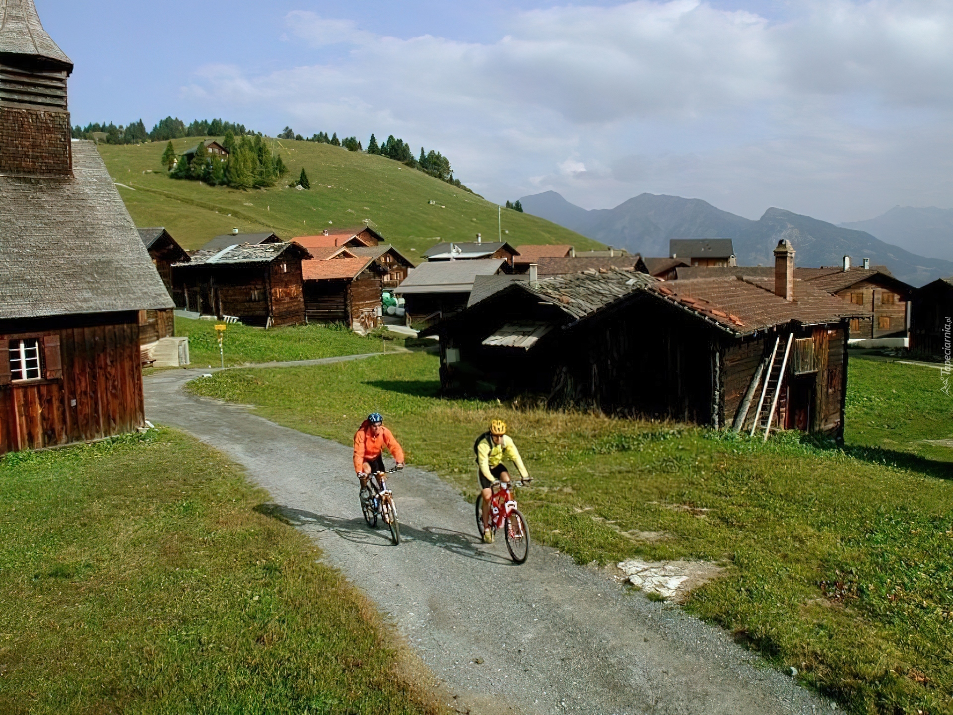 Edytor tapety: Rower,domki, droga