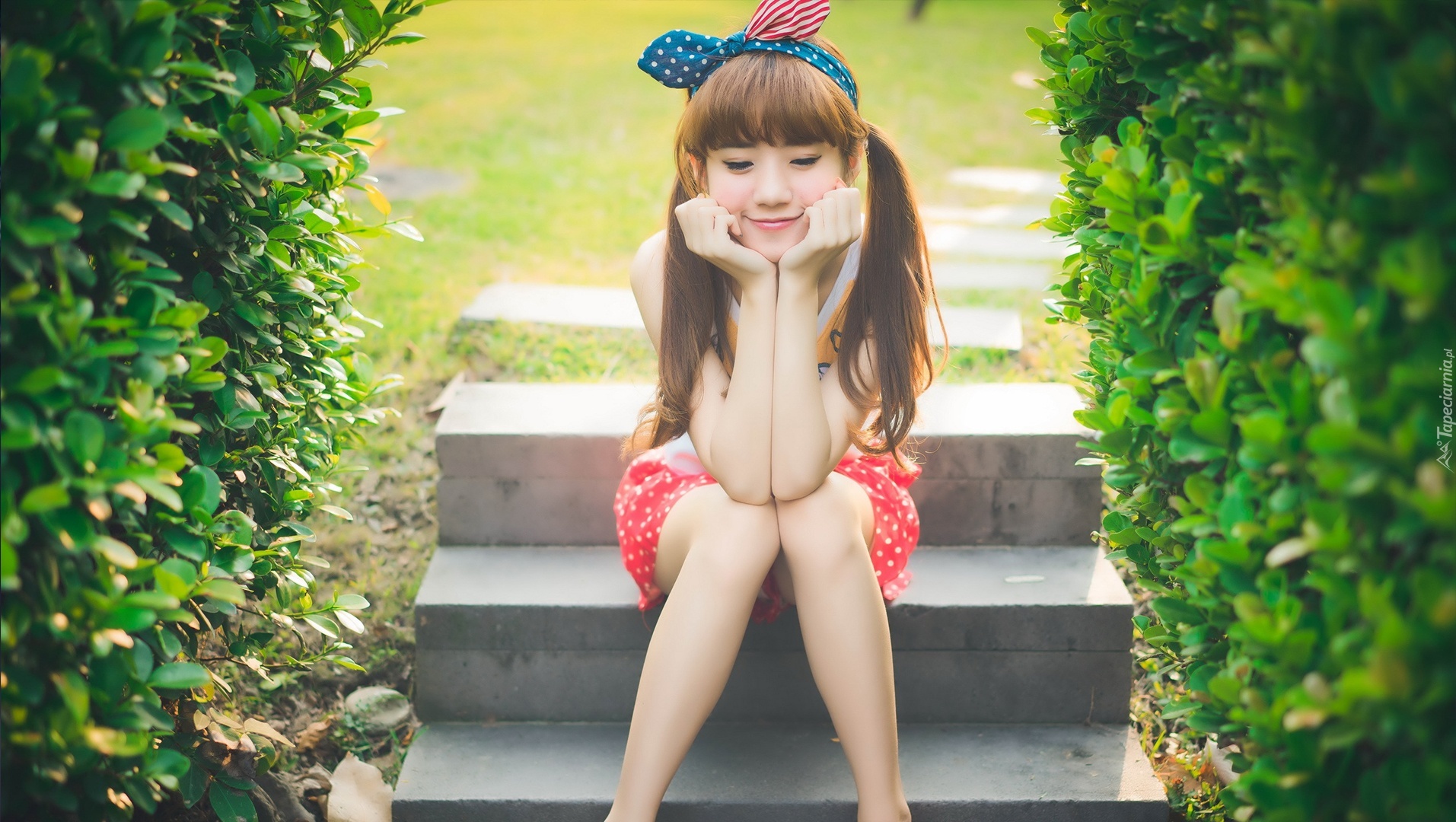 Edytor tapety: Dziecko, Dziewczynka, Schody, Pnące, Rośliny