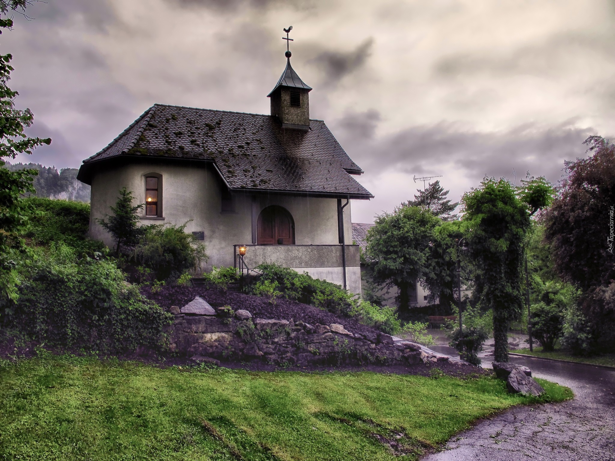 Edytor tapety: Dom, Ogródek, Droga