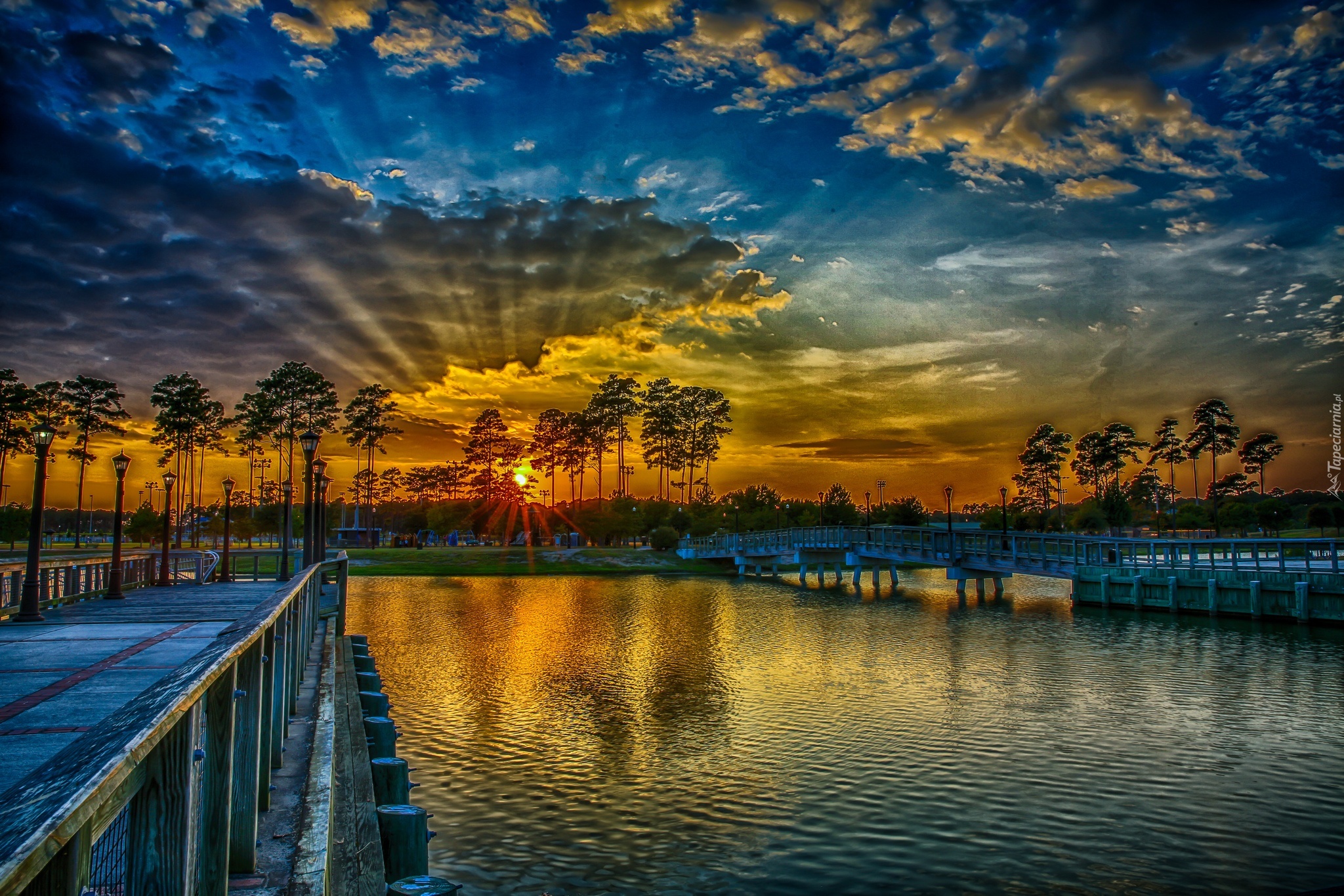 Edytor tapety: Jezioro, Molo, Zachod, Slonca, Niebo, Chmury