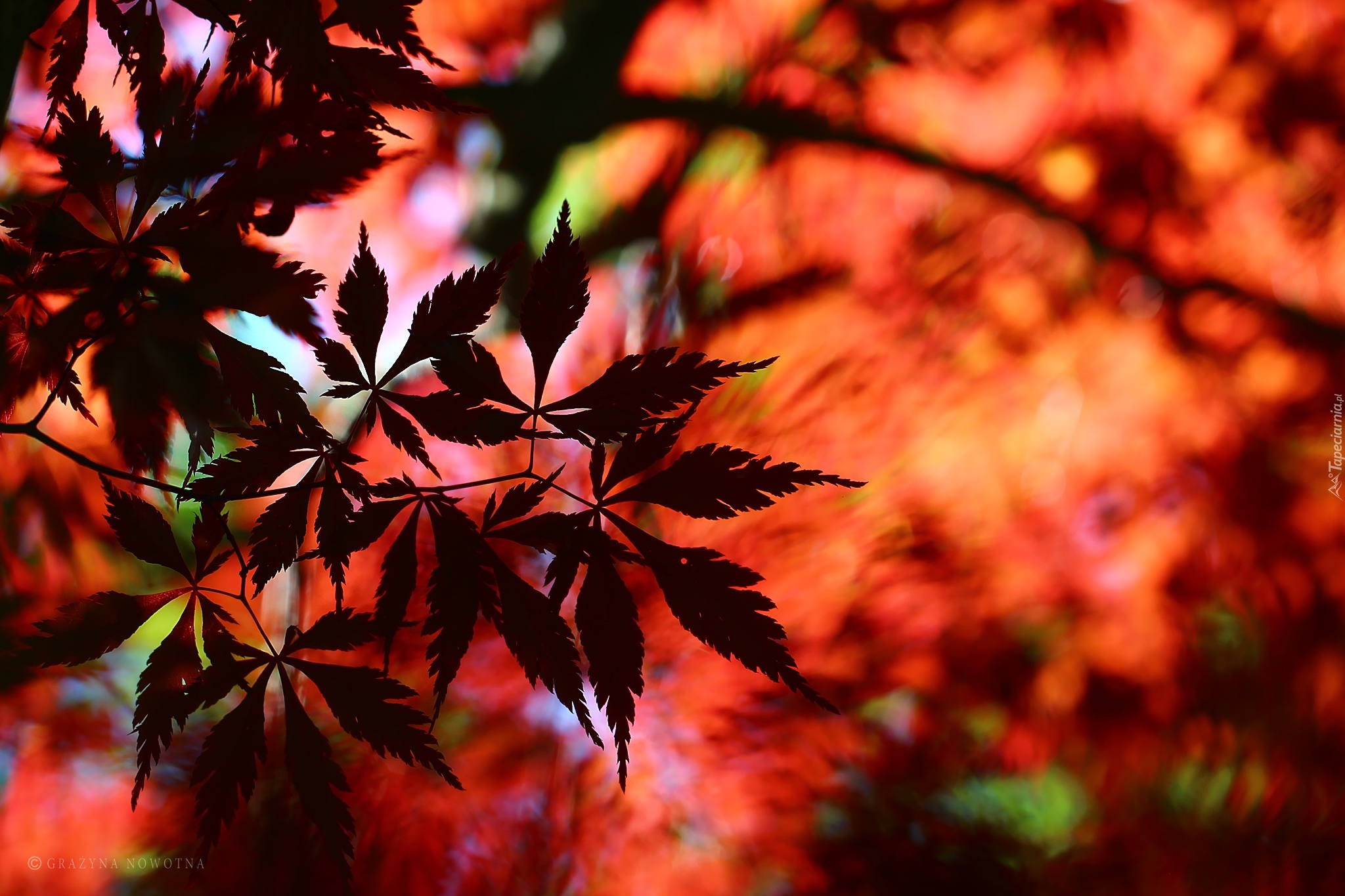 Edytor tapety: Klon Palmowy, Czerwone, Liście