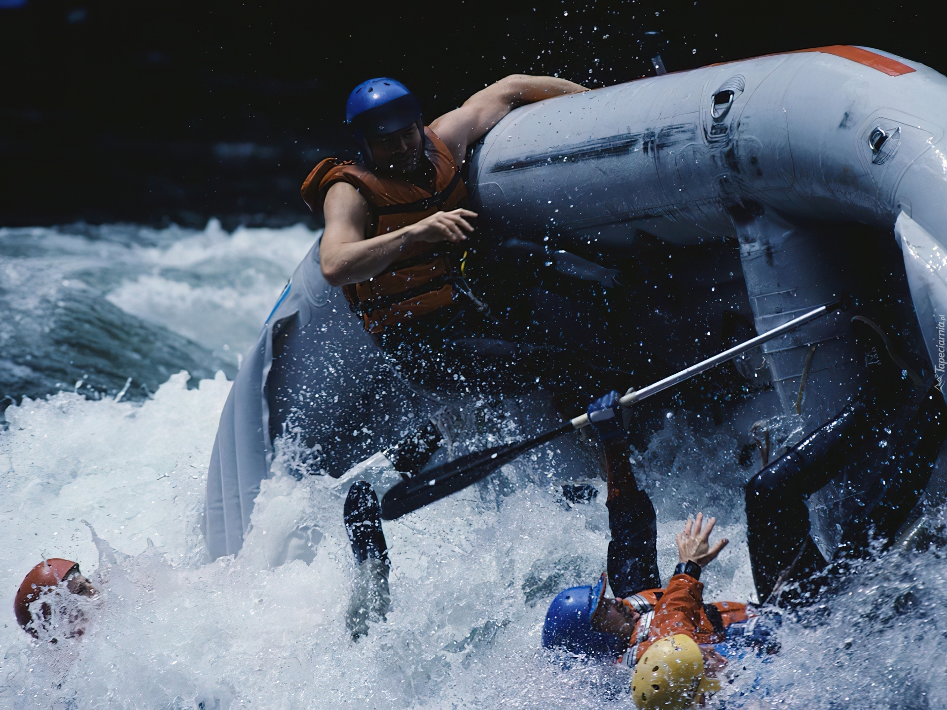 Edytor tapety: Rafting,spływ, rzeka, wiosła , wywrotka
