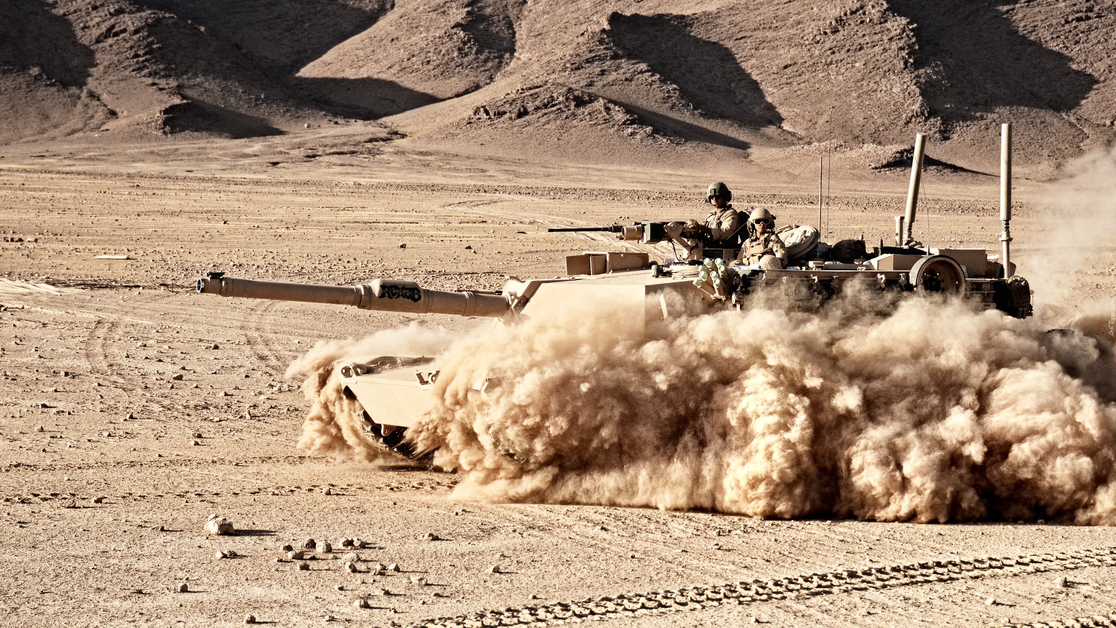 Edytor tapety: Czołg, M1A1 Abrams, Żołnierze, Pustynia