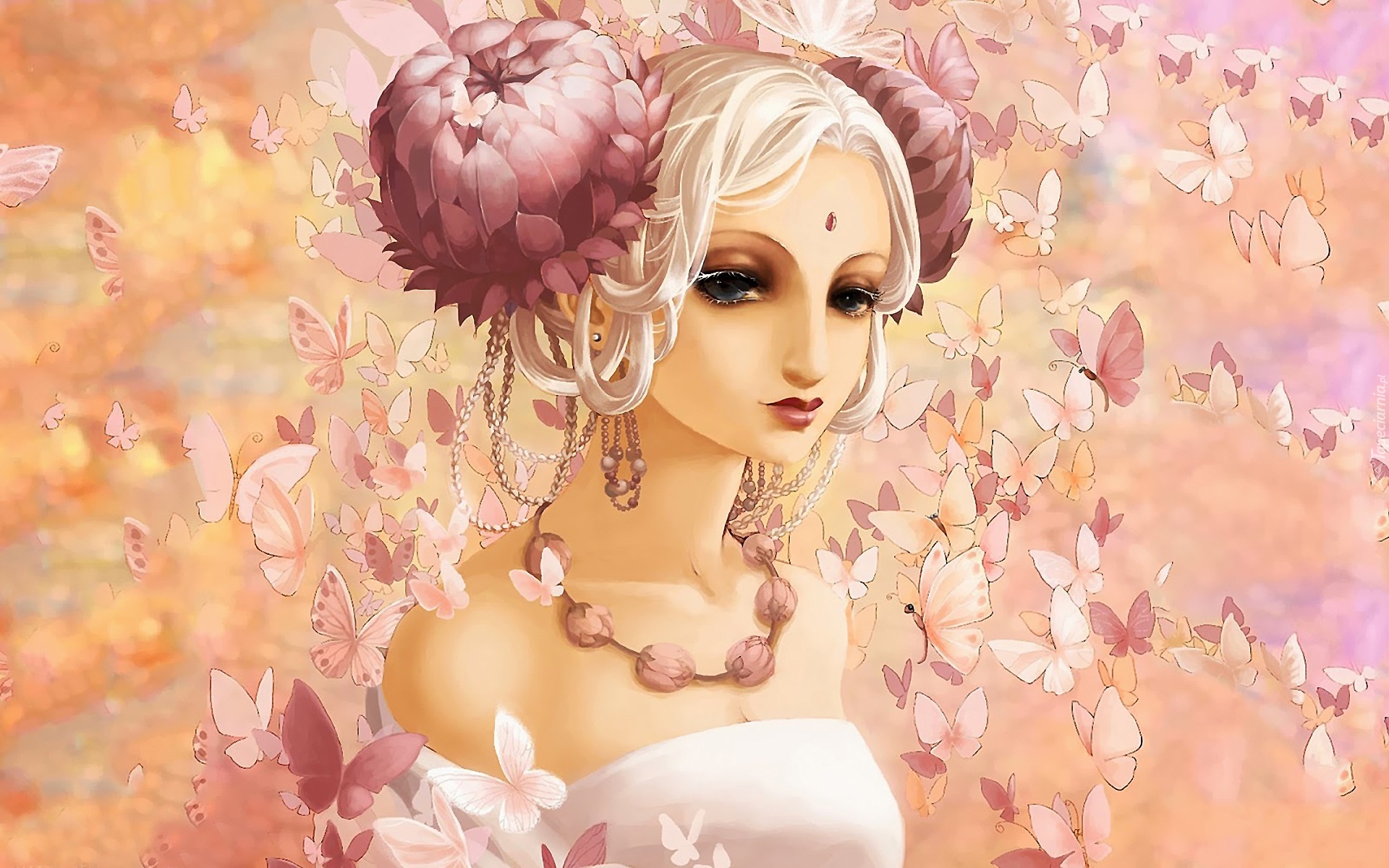 Edytor tapety: Grafika, Dziewczyna, Makijaż, Kolczyki, Naszyjnik, Motyle, Motylki