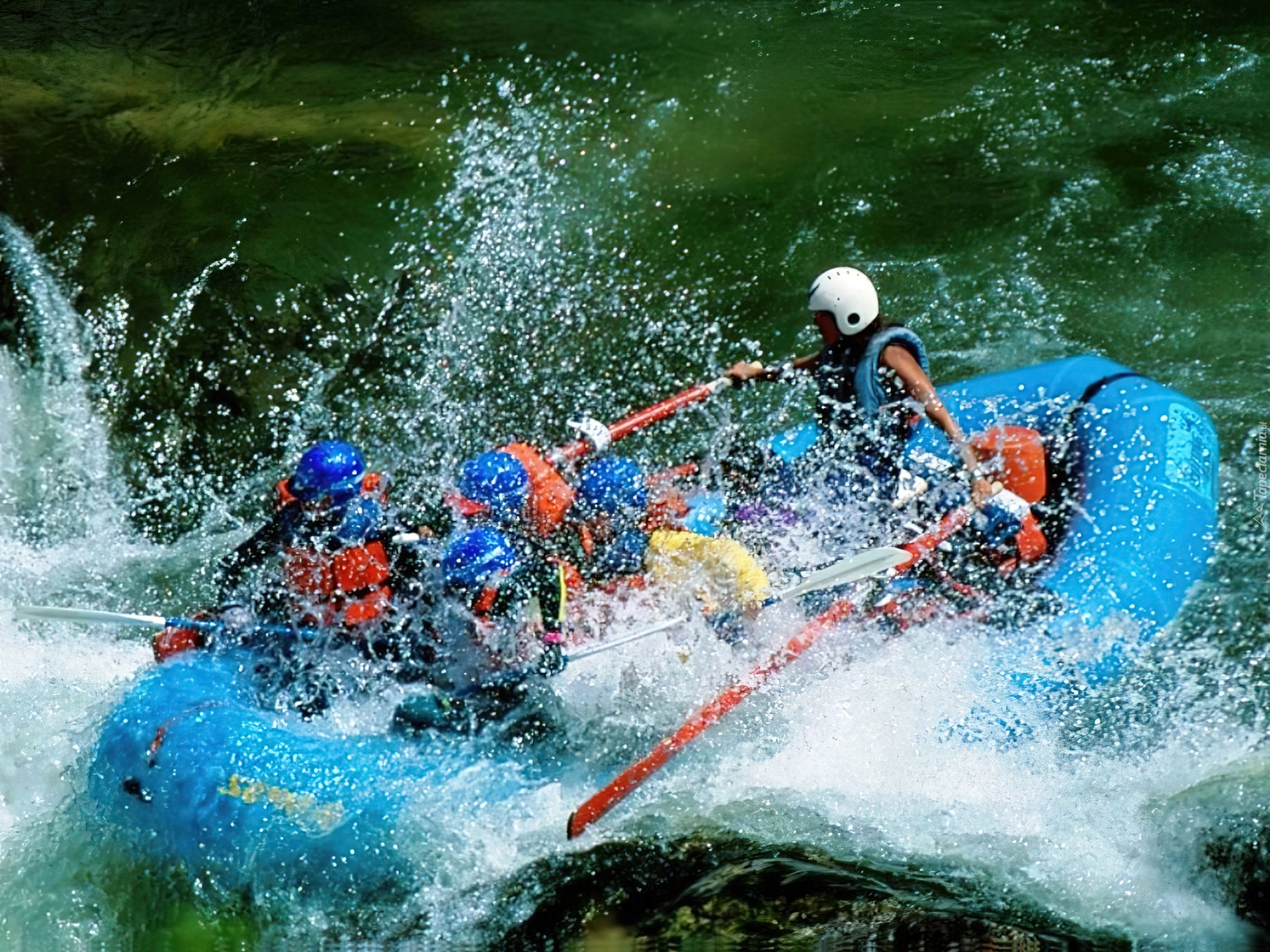 Edytor tapety: Rafting,spływ, rzeka, wiosła , ponton ,fale