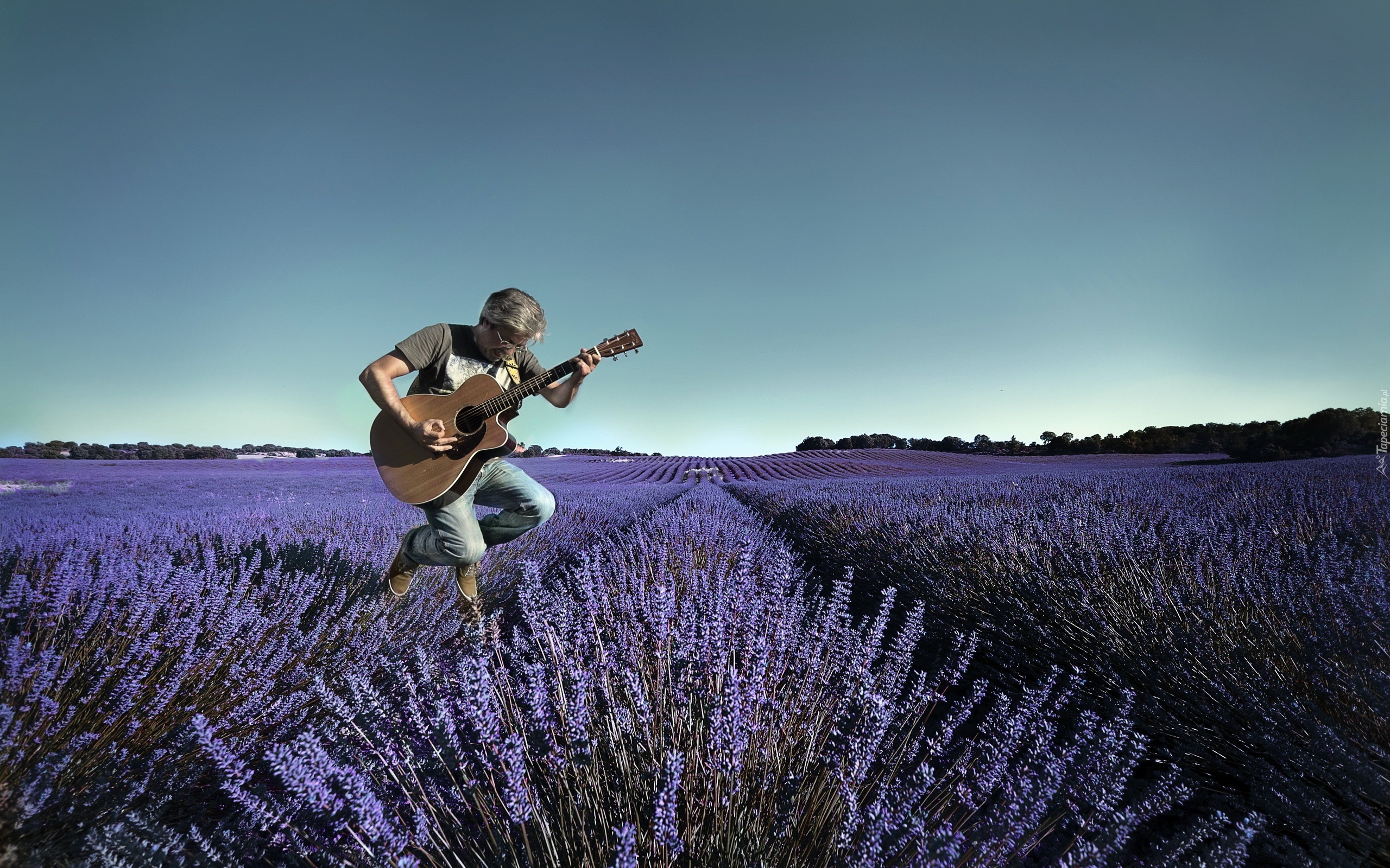 Edytor tapety: Pole, Lawenda, Mezczyzna, Gitara