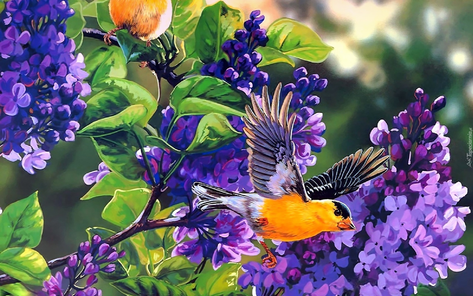 Edytor tapety: Gałązki, Bzu, Żółty, Ptak, Czyżyk, Czyż