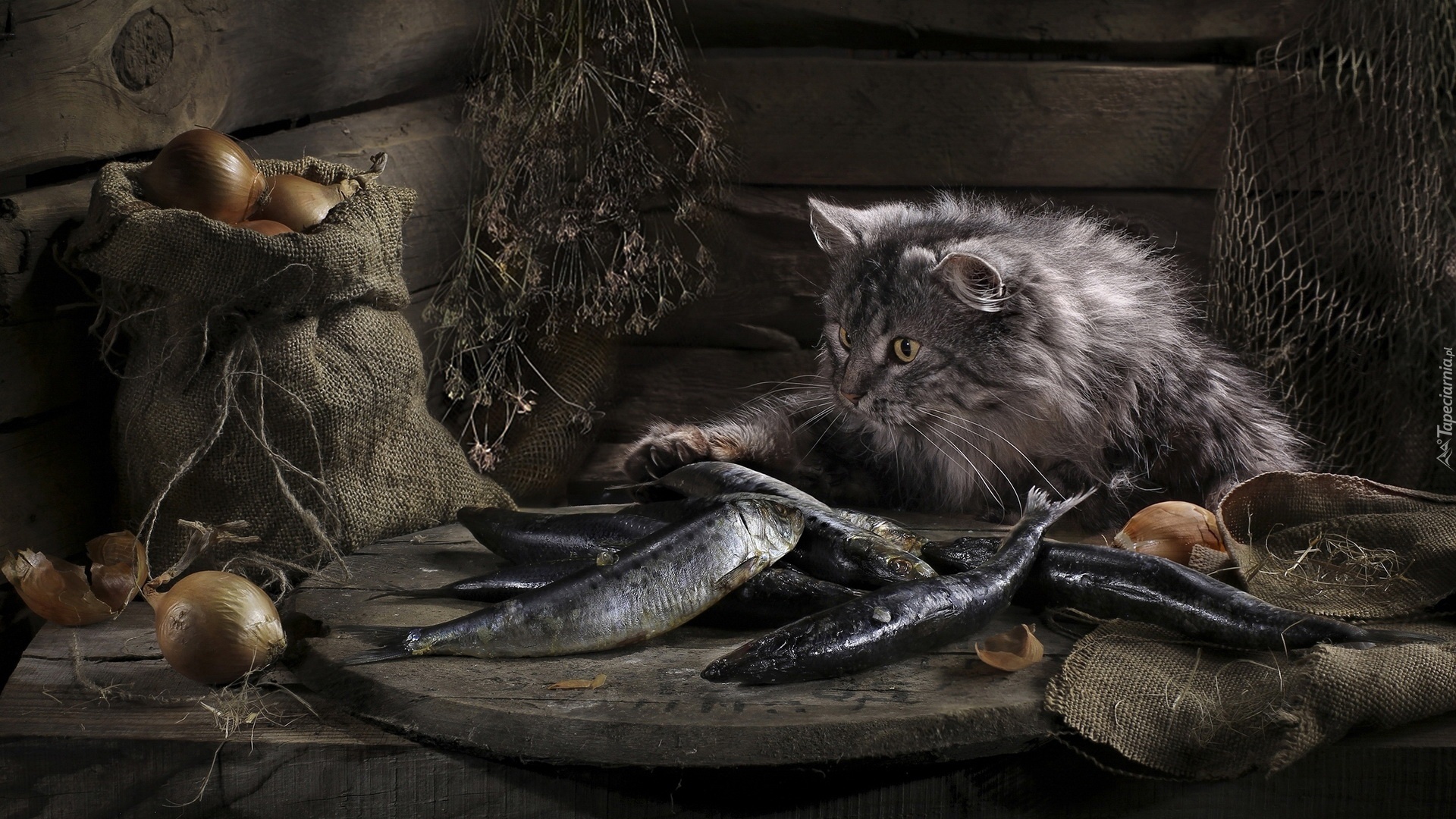 Edytor tapety: Kot, Ryby, Cebula