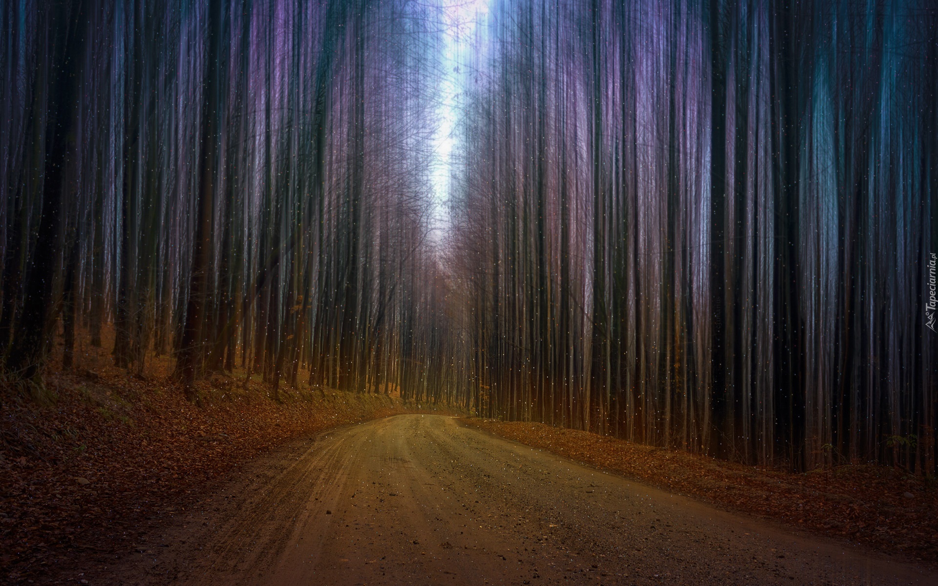 Edytor tapety: Droga, Las, Padający, Śnieg