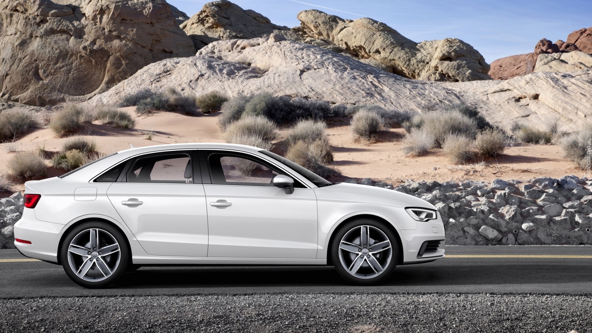 Edytor tapety: Audi, A3, Droga, Skały, Kamienie, Rośliny