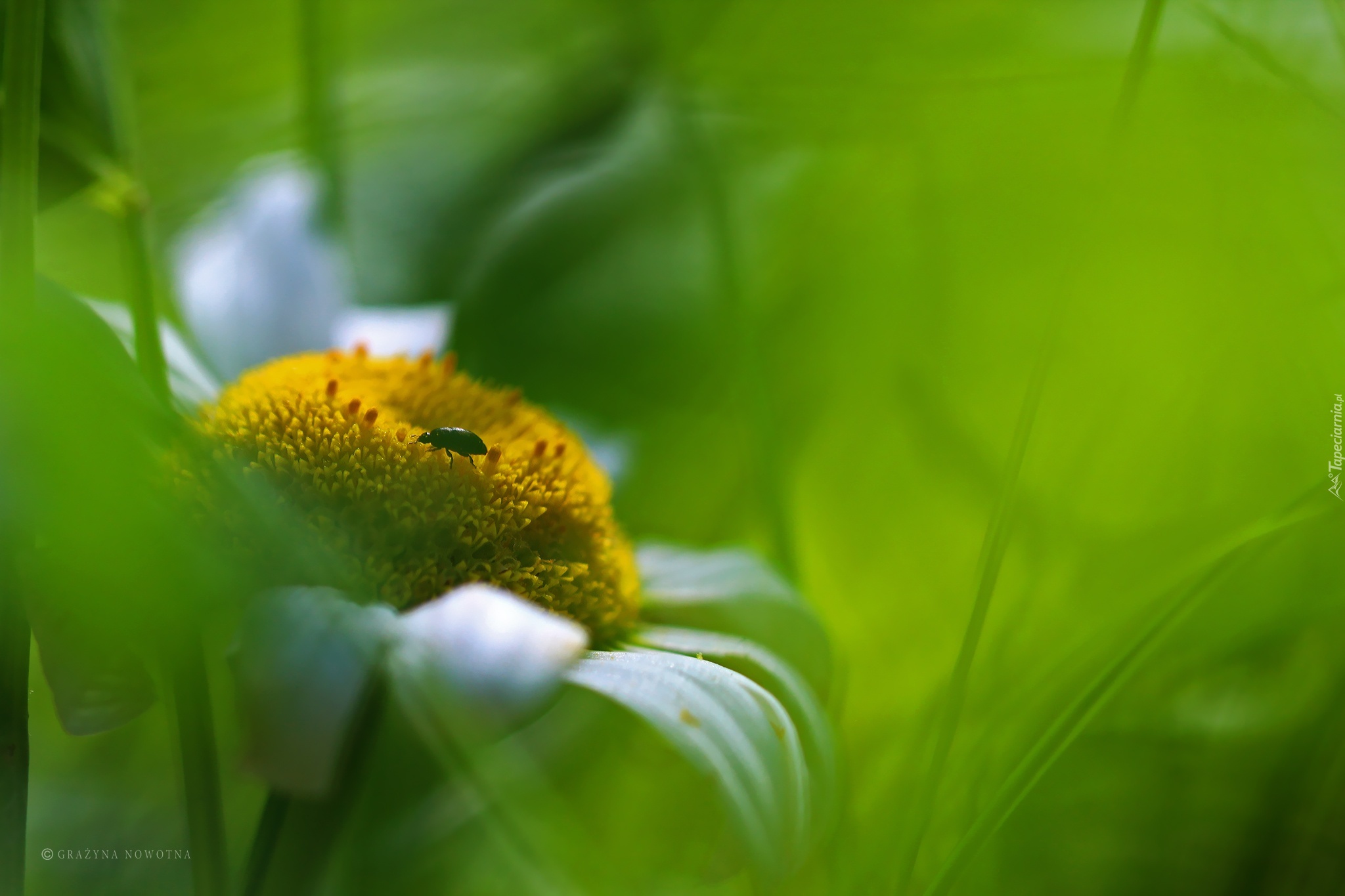 Edytor tapety: Margerytka, Biały, Kwiat, Robak