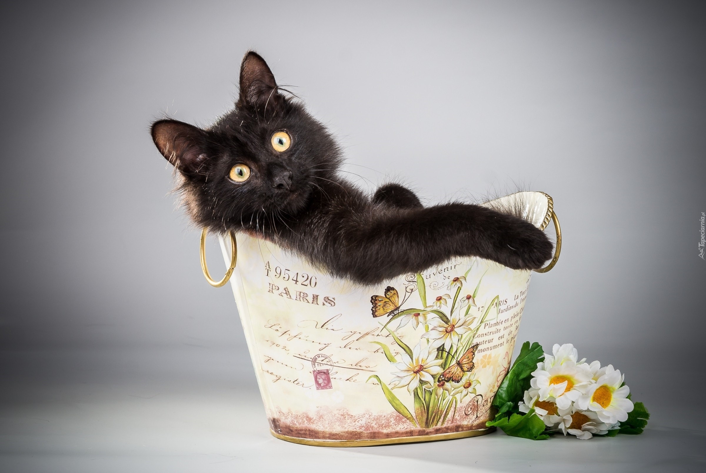 Edytor tapety: Kot, Pojemnik, Kwiaty
