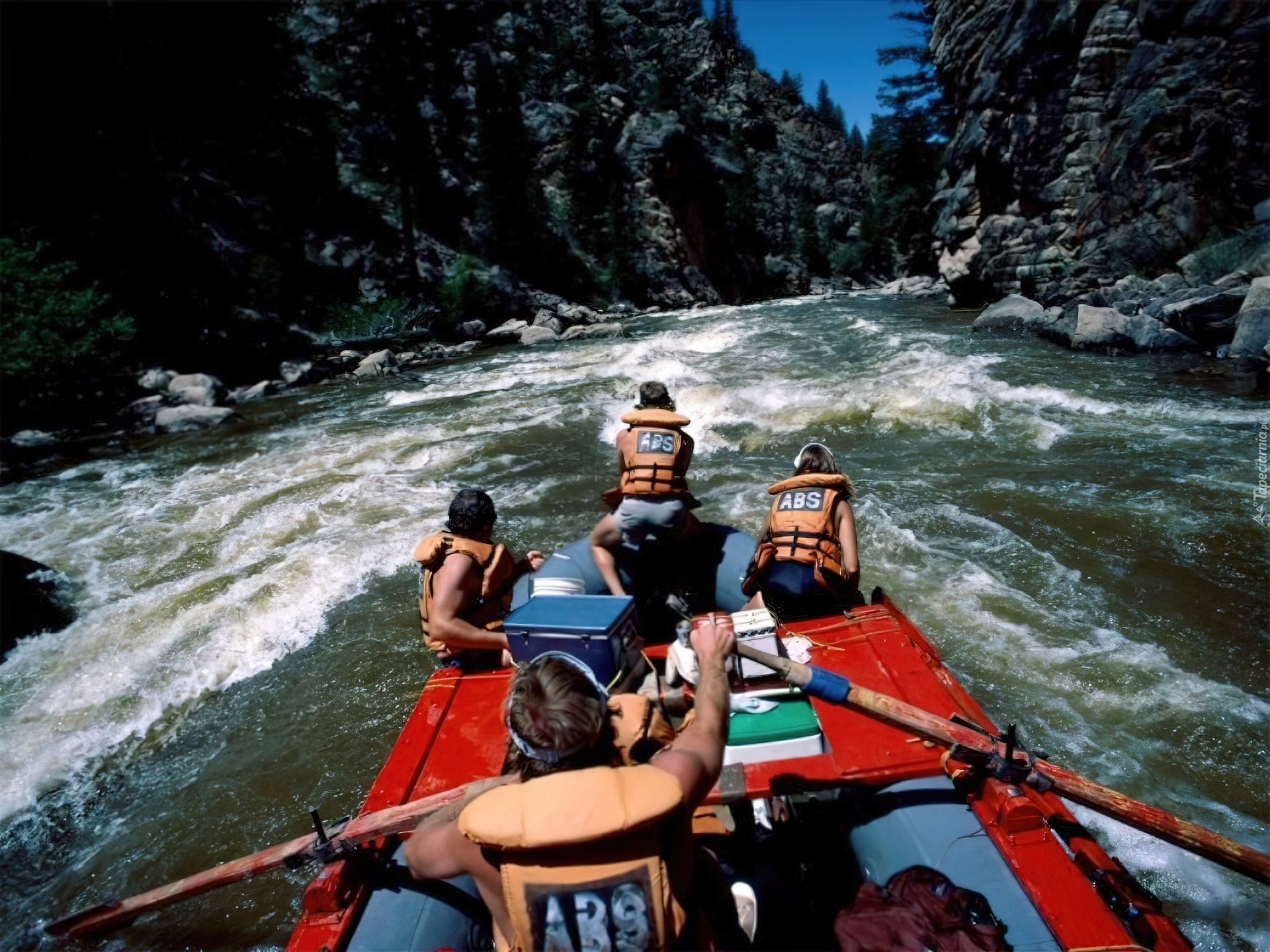 Edytor tapety: Rafting,spływ, rzeka, wiosła , ponton ,góry