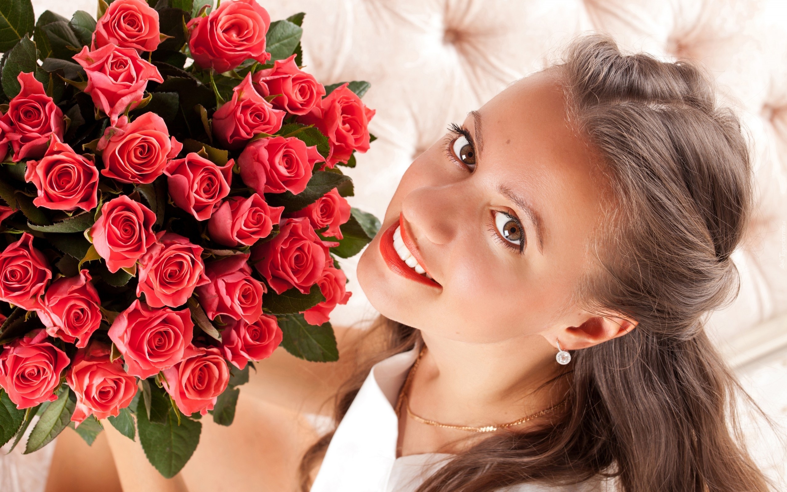Edytor tapety: Kwiaty, Kobieta, Bukiet, Roze
